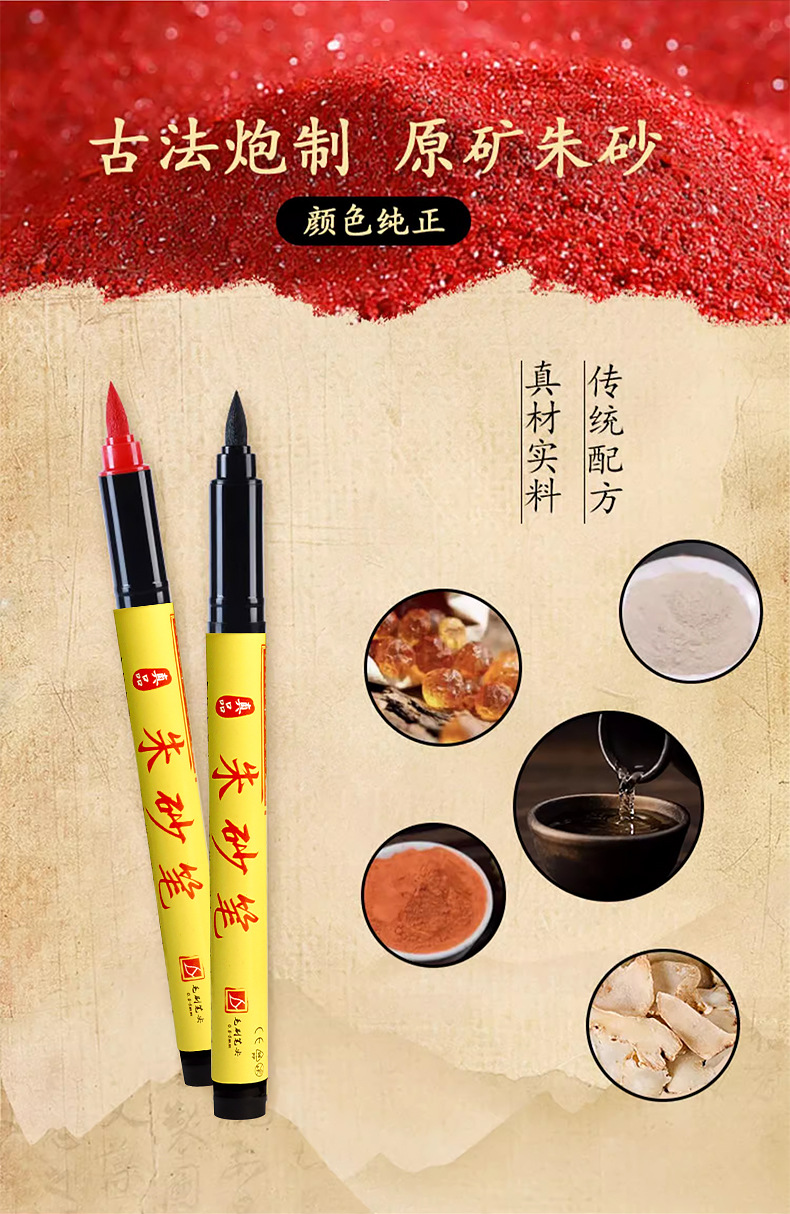 朱砂筆は朱砂液道家専用の紅墨汁を含んでいます。