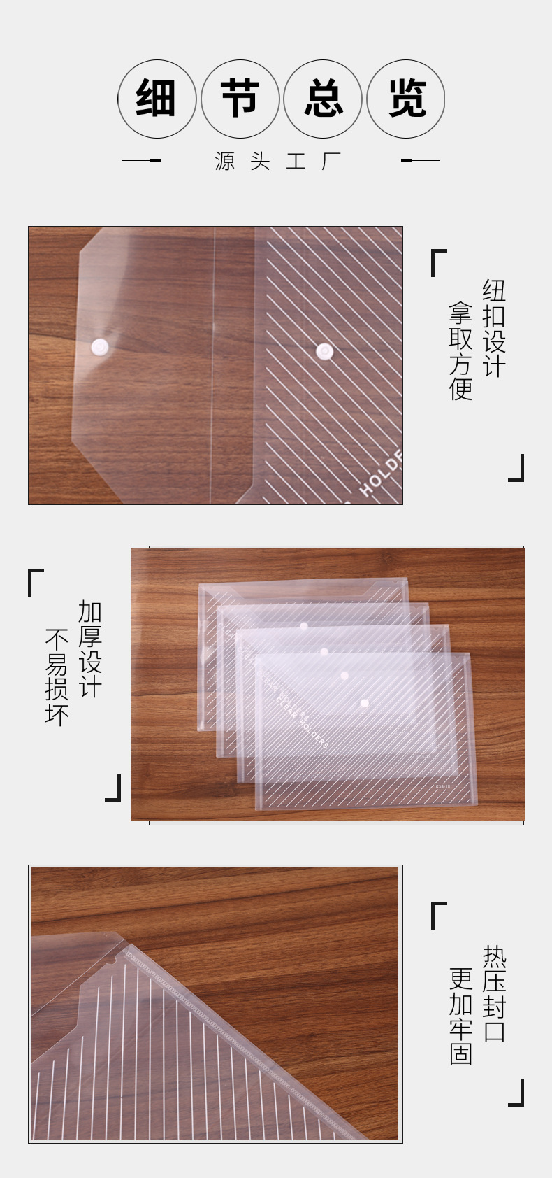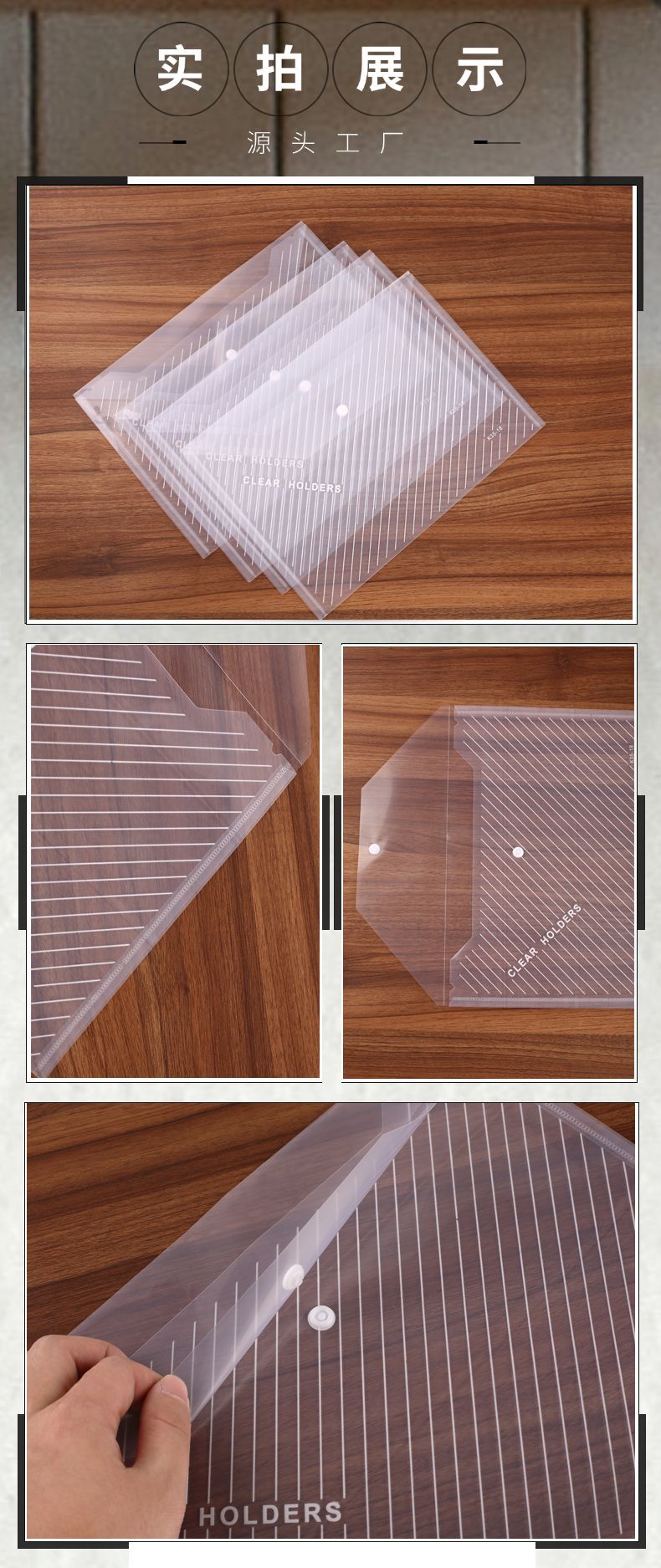 A4文件合同纯色档案资料收纳加厚防水按扣PP透明竖纹文件袋批发