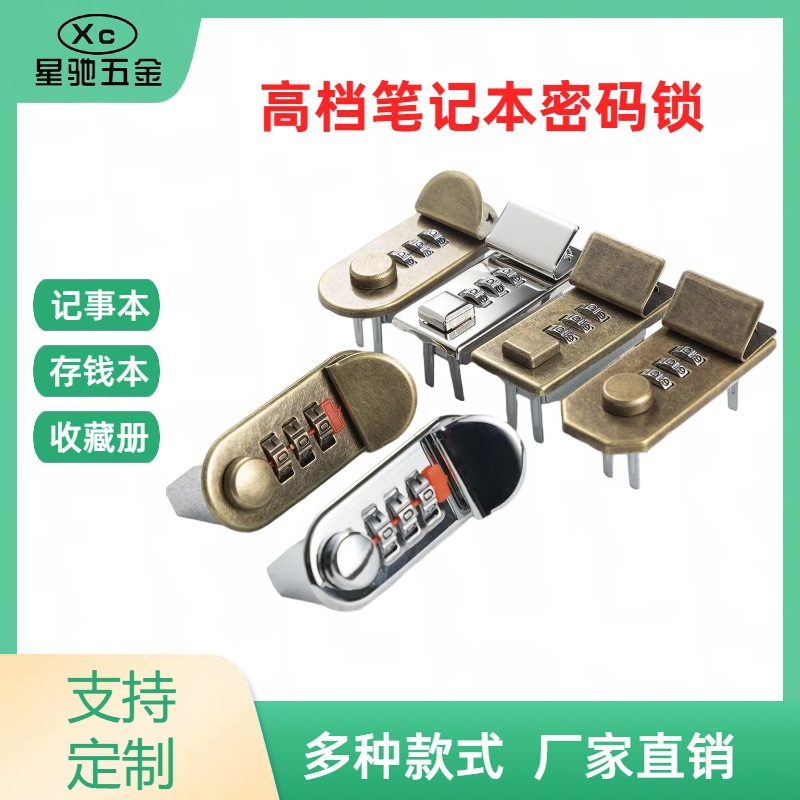 ノートブック用金具、楕円形アップルロック、ビジネスノート、ブリーフケース、角型バックル、電気メッキ3桁パスワードロック