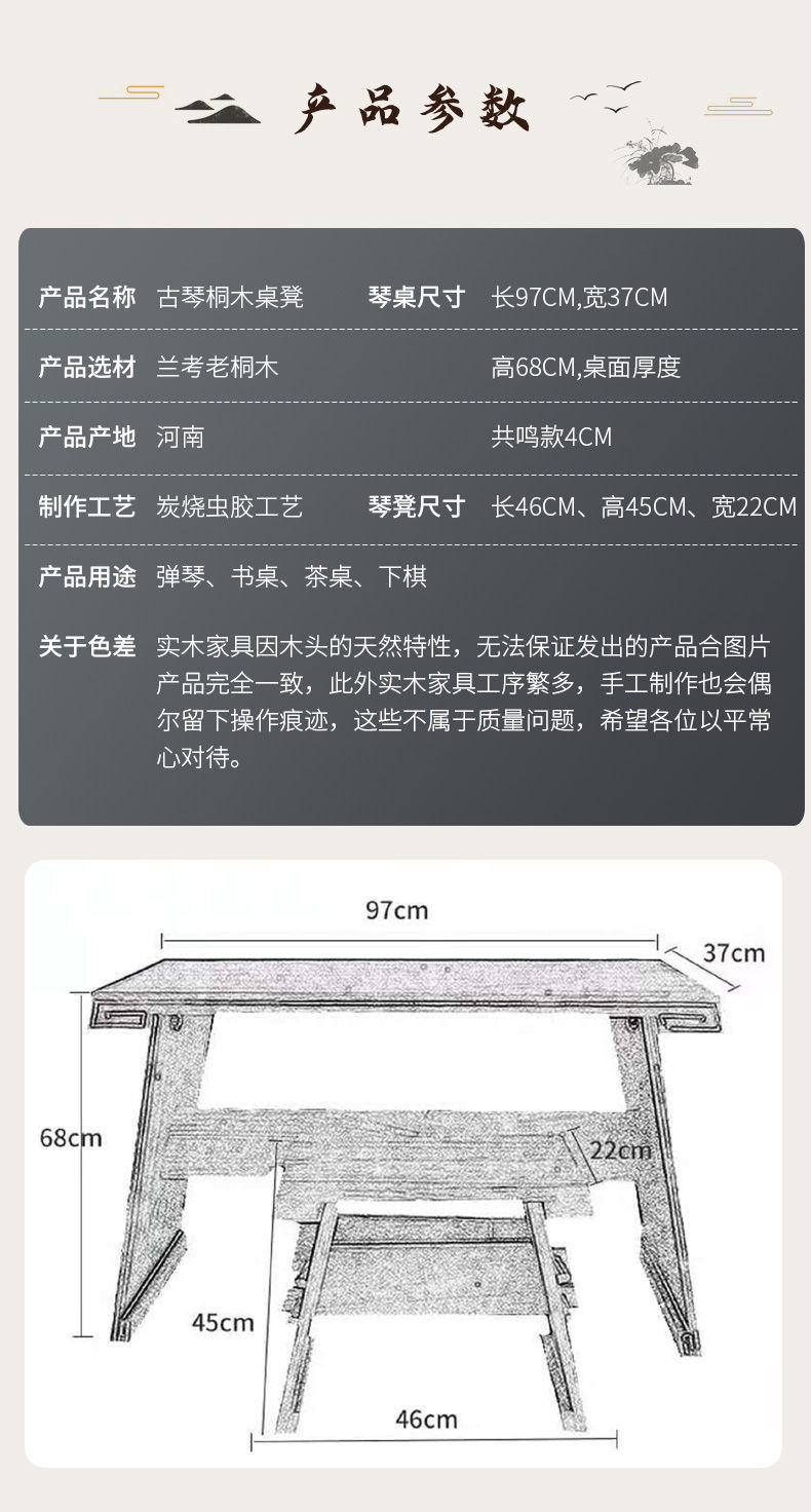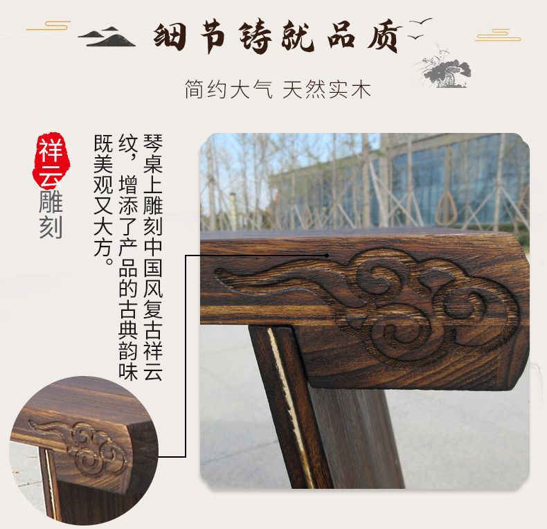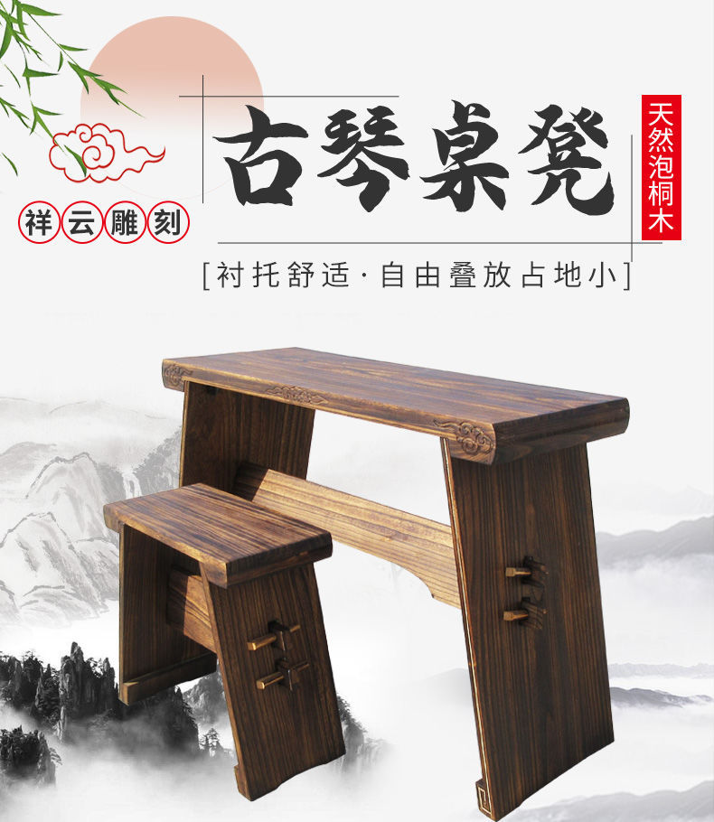 现代新中式复古古琴桌凳一套实木便携式琴桌国学凳子简约桌子套装