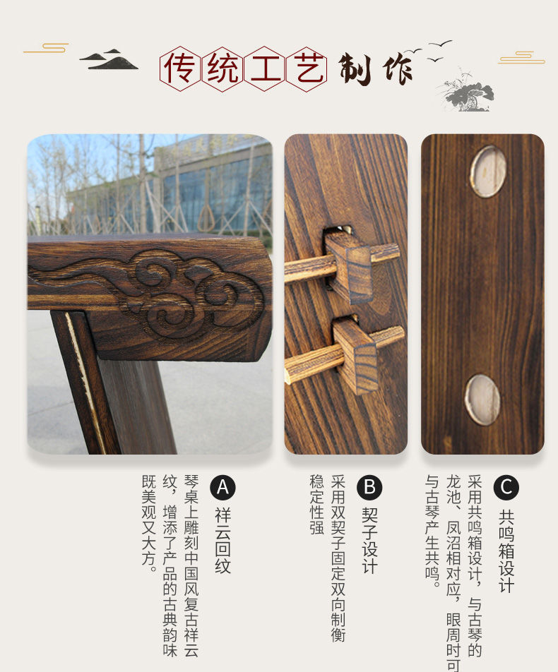 桐の木の共鳴箱の古琴の机の腰掛けは古の実木をまねて組み立てて携帯の初心者を分解します。