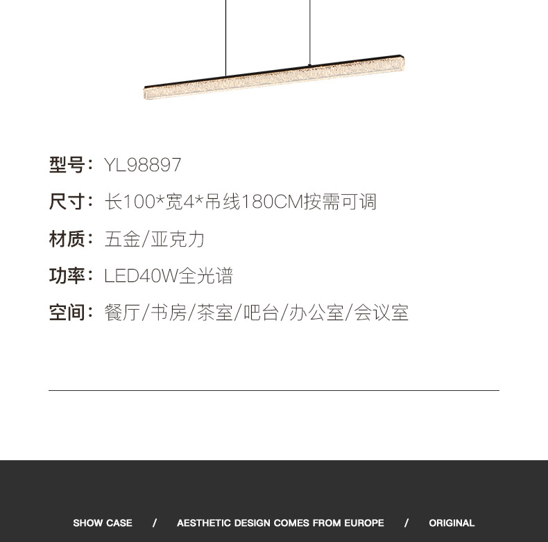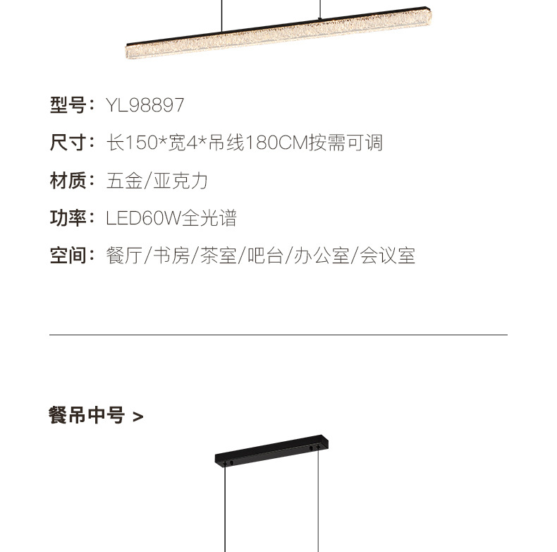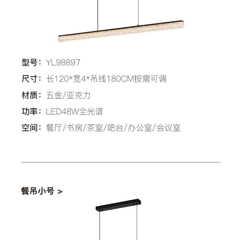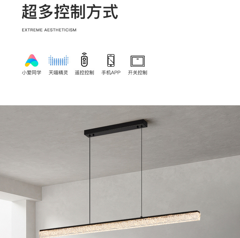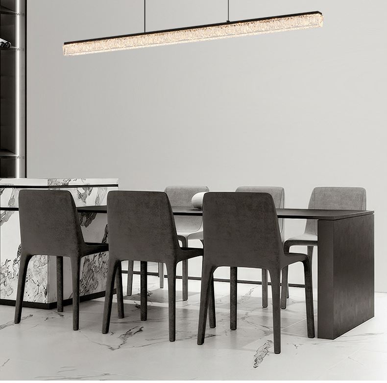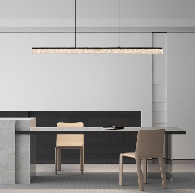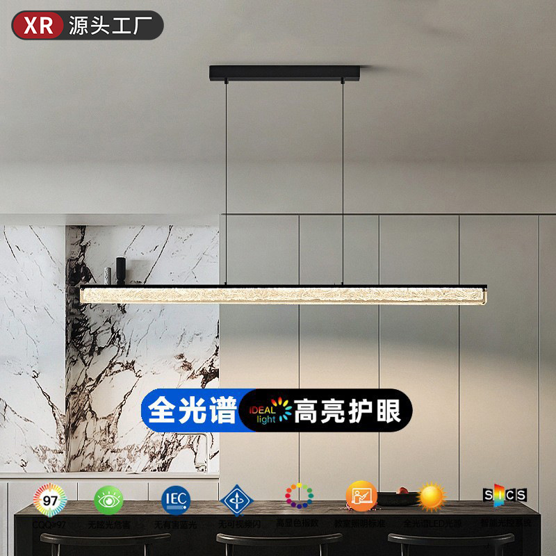 意式极简一字长条餐厅灯吊灯现代高级感轻奢冰晶树脂设计师吧台灯