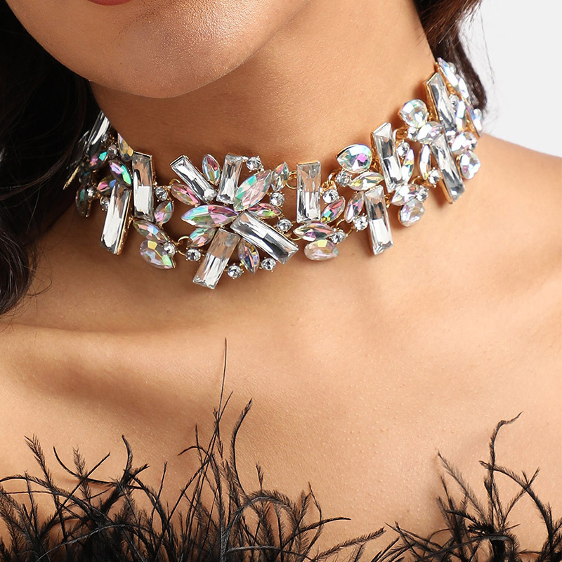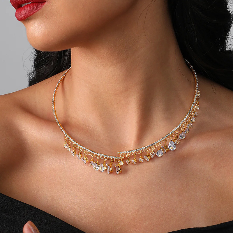 速売通の潮流の幾何学のネックレスの高級感の水ドリルの首のチェーンのきらめく装飾の女性のNecklace