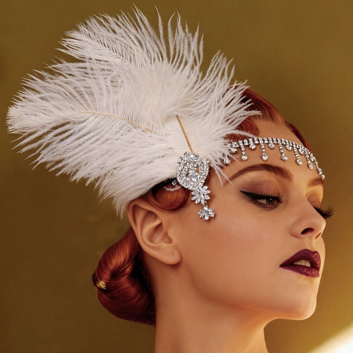 跨境热卖盖茨比羽毛发带复古镶钻流苏头饰舞台表演配饰headwear