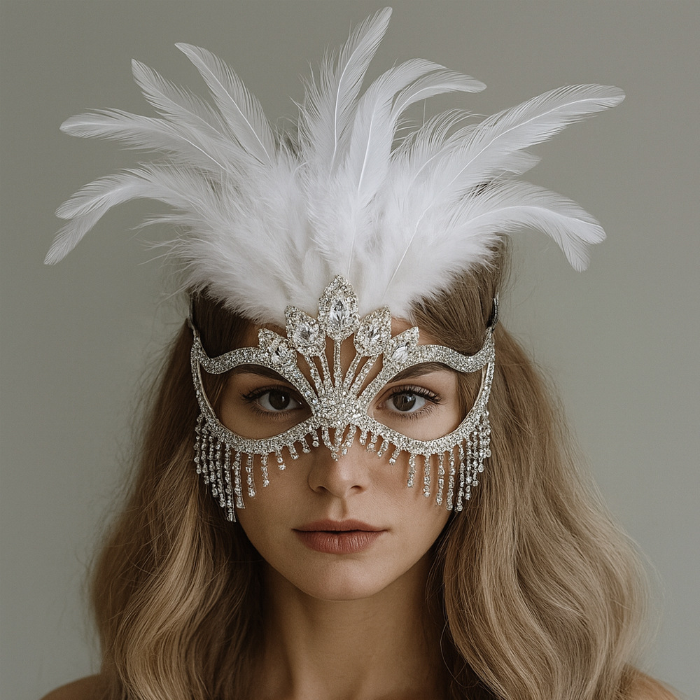 欧美热卖羽毛面具万圣节镶钻流苏面试舞台表演配饰女mask