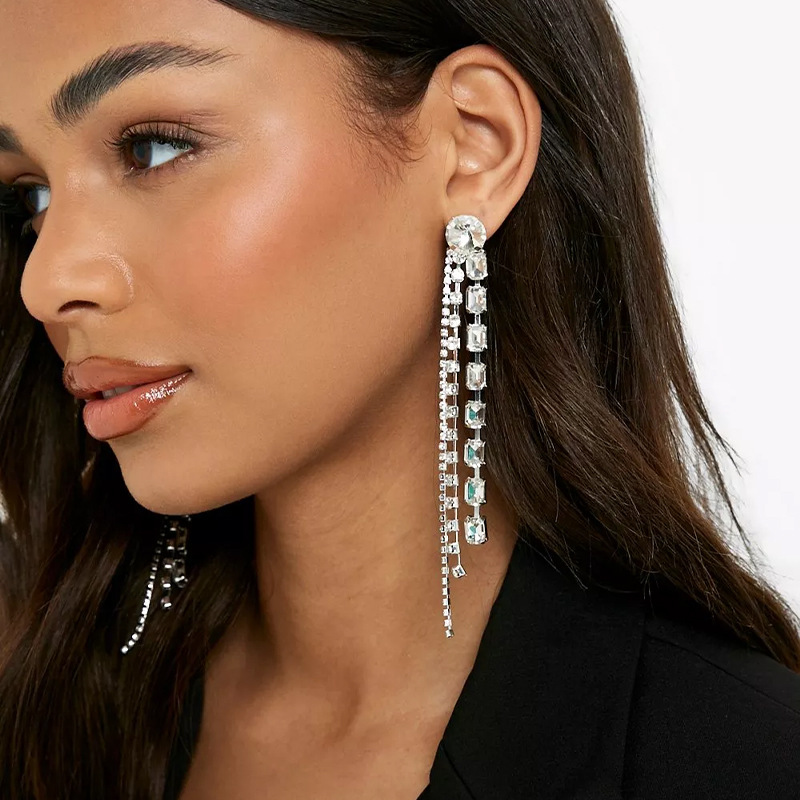 亚马逊爆火水滴耳挂设计感简约水钻挂耳个性配饰女earrings