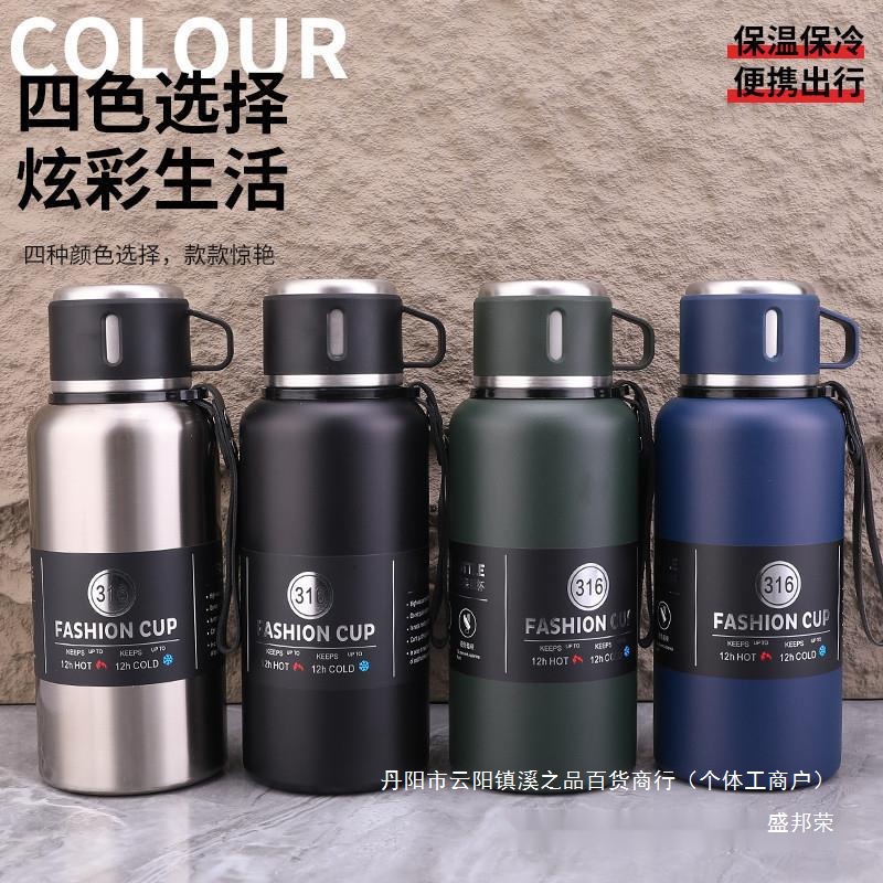 316 ステンレス鋼魔法瓶ケトル大容量屋外学生魔法瓶カップ弾丸茶スポーツ水カップ 1L 男性