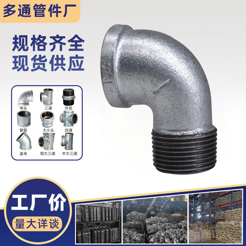 溶融亜鉛メッキ内外糸エルボ対外貿易馬鋼継手DN25エルボ水暖継手1インチ亜鉛メッキ部品