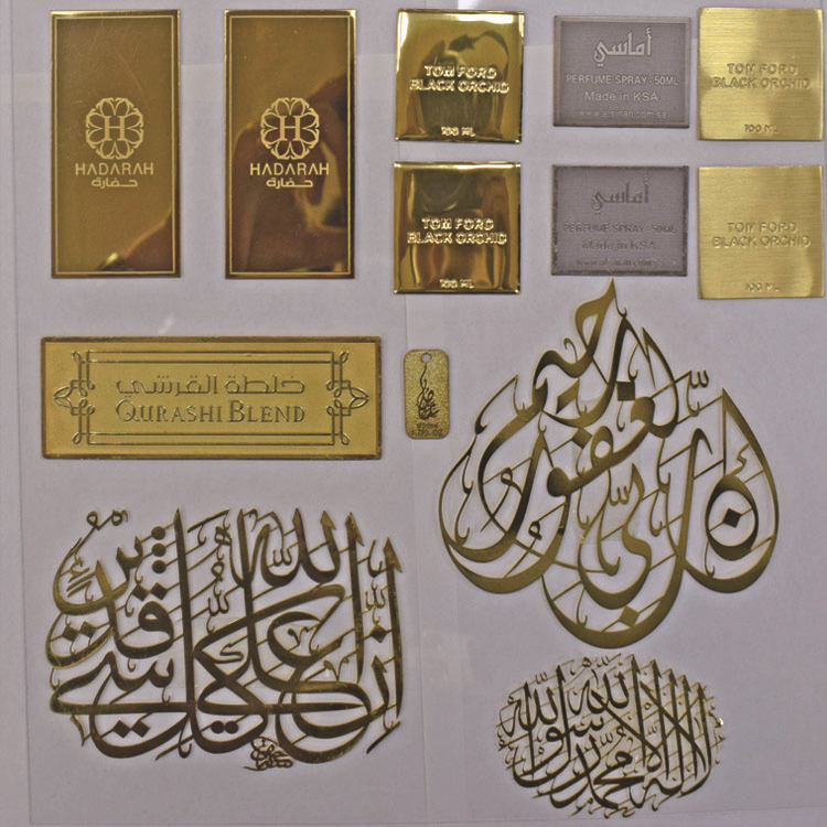 カスタマイズされた中東アラビアサイン化粧品香水サインネームプレートハイエンドメタルサインメタル卸売