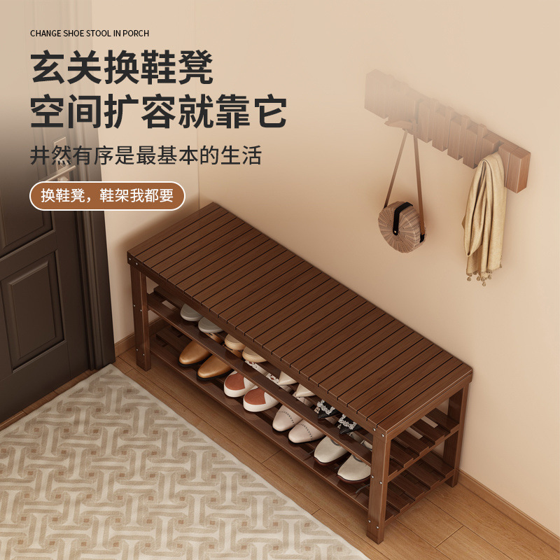 下駄箱の靴棚が一体になっています。下駄箱の入り口に座ることができます。