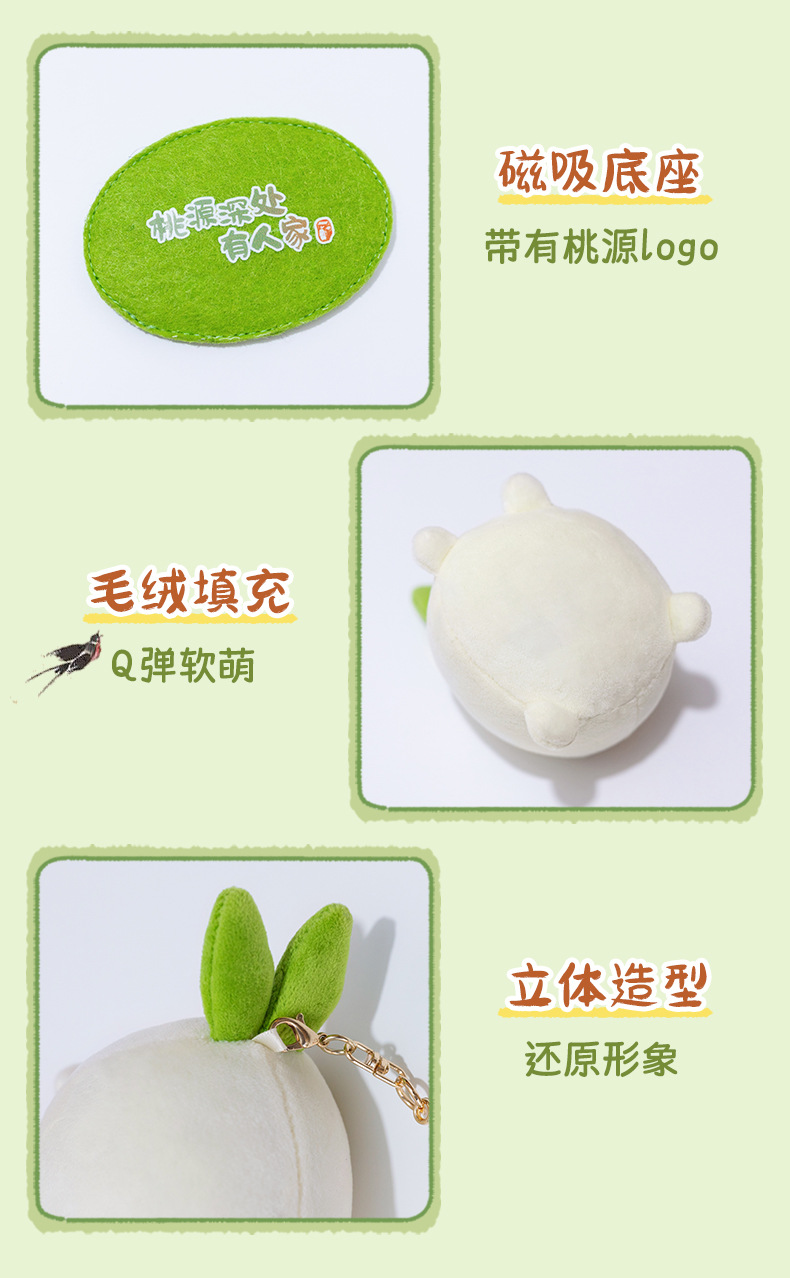 Wai Guaguaが制作した、桃源の奥深くに住んでいる家族、かわいい大根のぬいぐるみペンダント、かわいい周辺人形