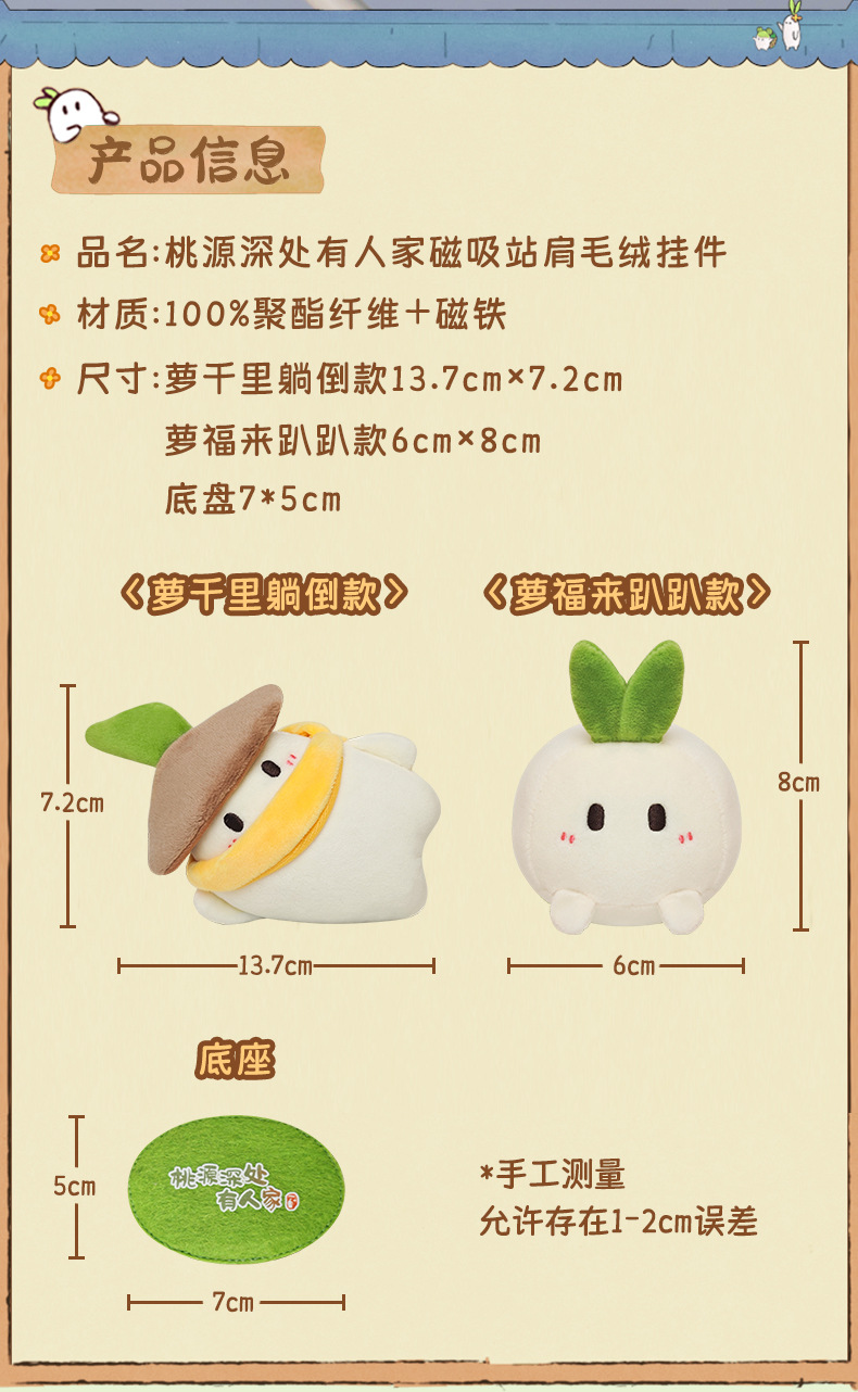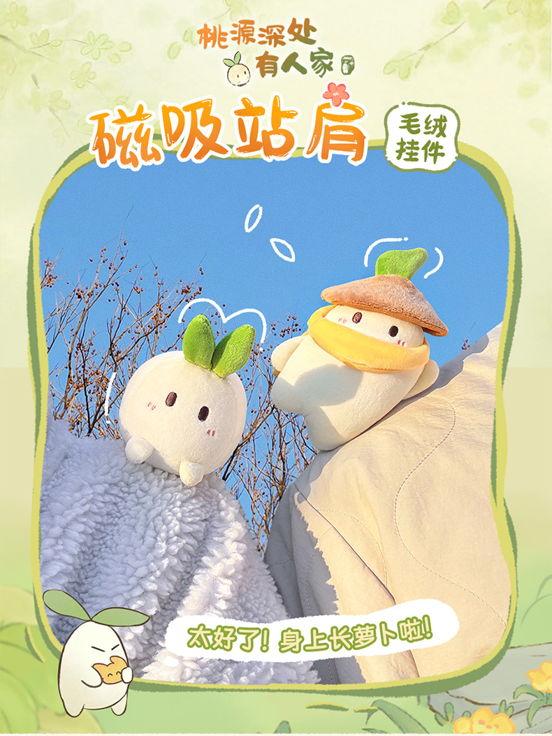 高さ 桃園の奥深くに住む人々の大根磁気吸引ステーションショルダーぬいぐるみペンダント - Luo Qianli 横たわるスタイル