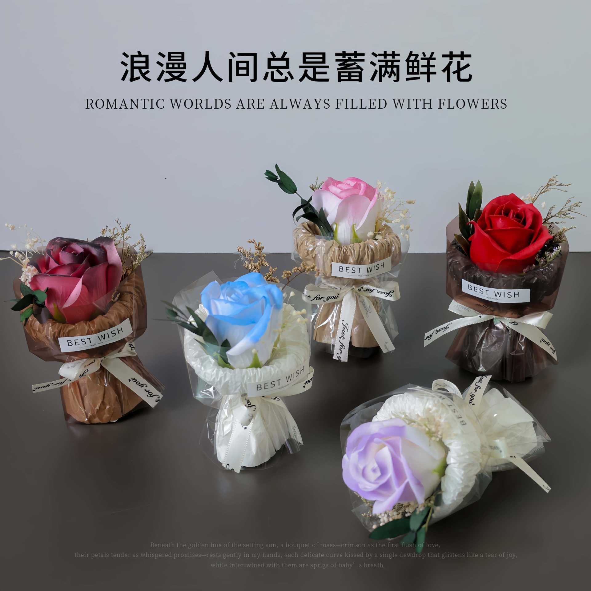 香皂mini花束迷你小玫瑰永生花仿真干花伴手礼生日礼物摆件外贸