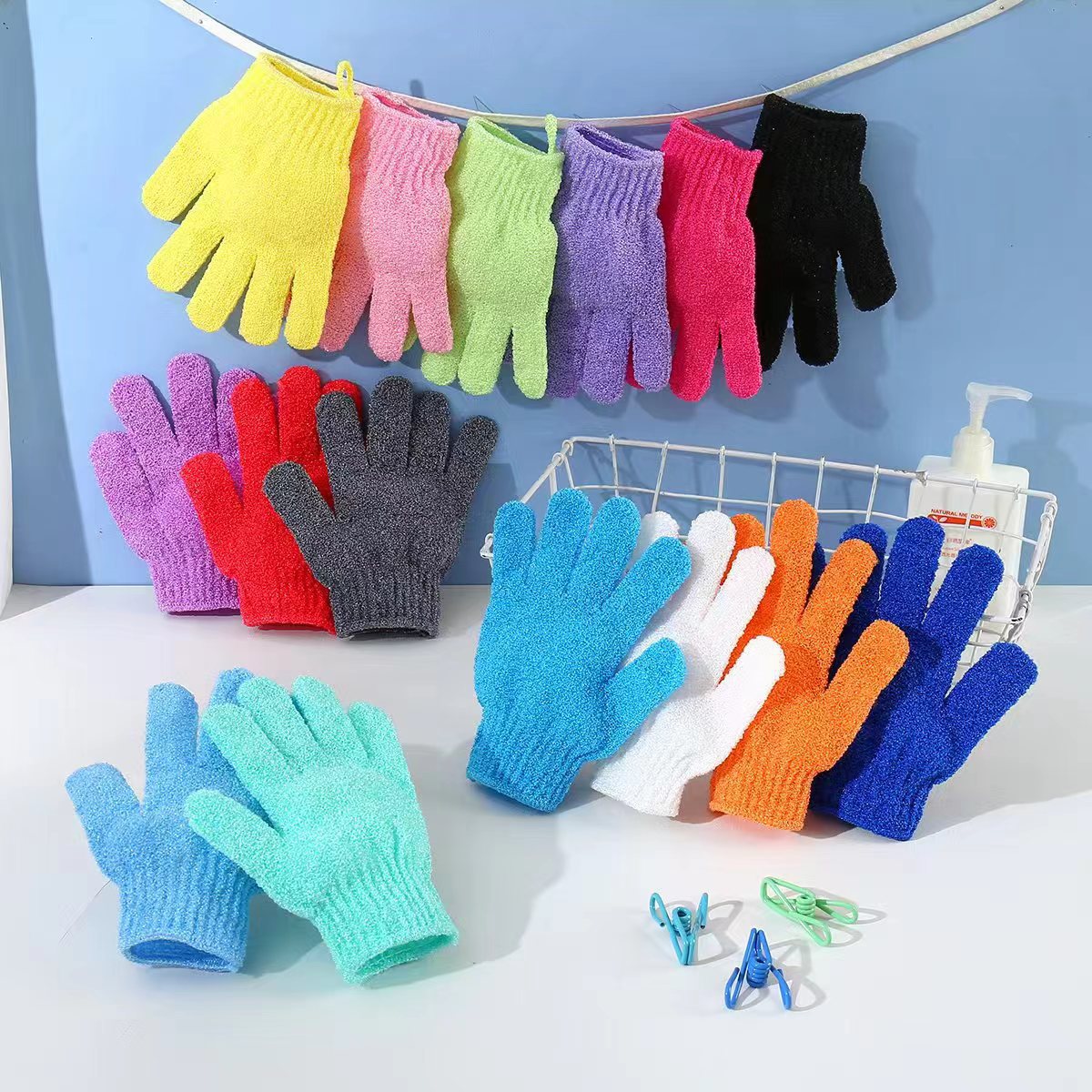 バスグローブ、5本指バスタオル、スクラブバスアーティファクト、角質除去、泥こすり、背中こすり、卸売メーカー直販