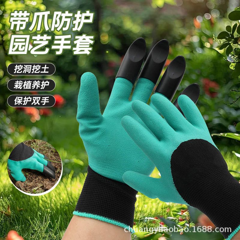 園芸手袋爪付き土掘り手袋ガーデン野菜栽培花園林栽培防刺防護ラテックス手袋
