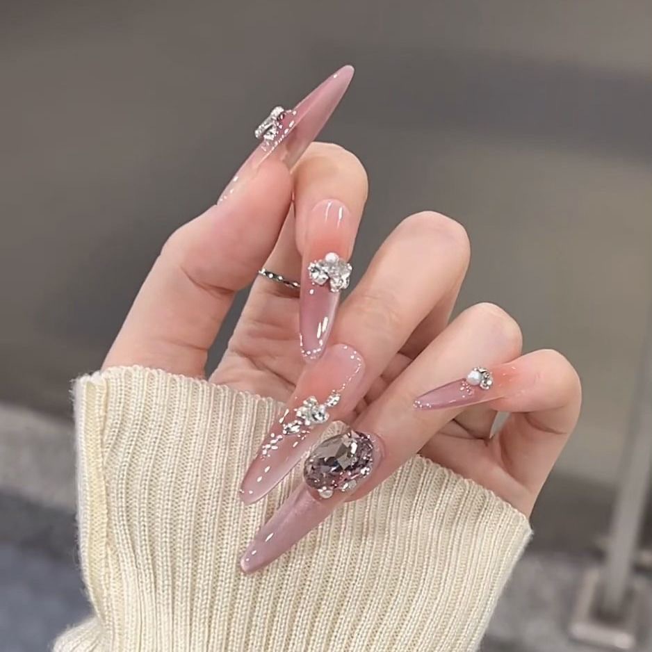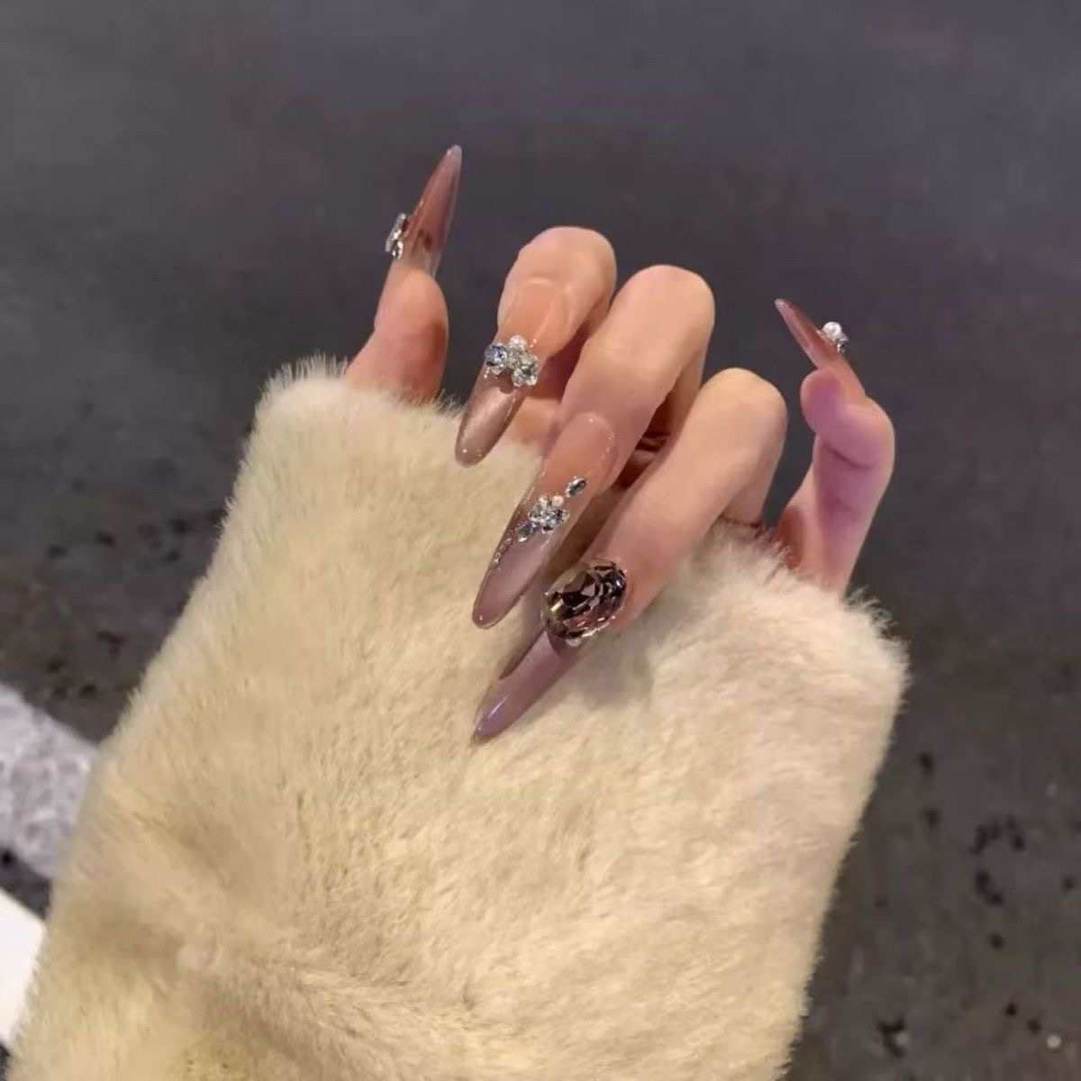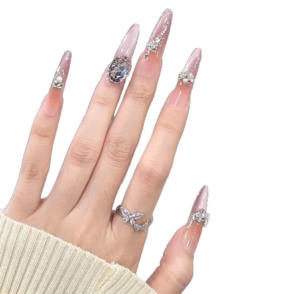 手工穿戴甲蝴蝶简约带钻百搭婚甲高级显白长款美甲名媛