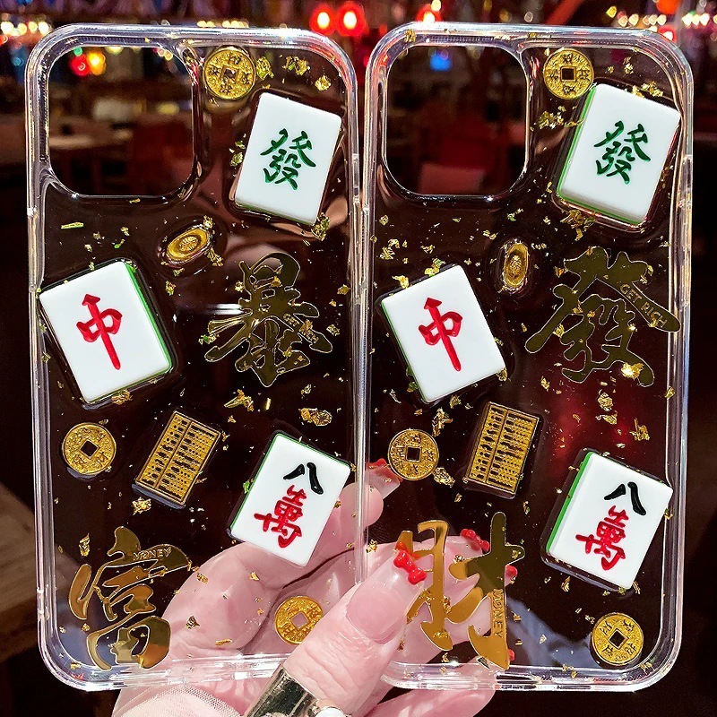 适用iphone16pm苹果17手机壳滴胶金箔麻将发财15/14pro防摔13暴富