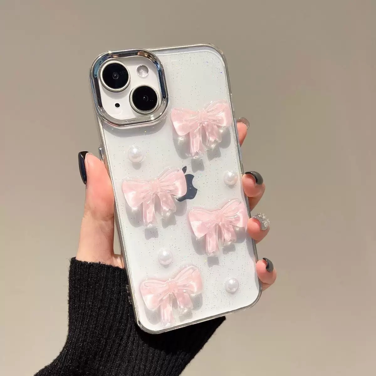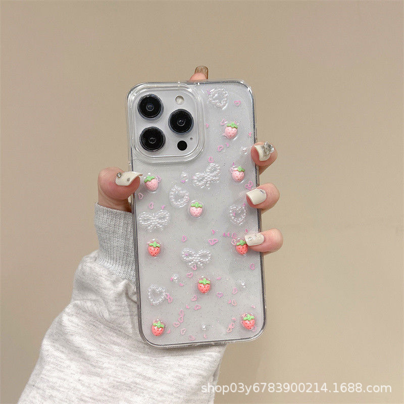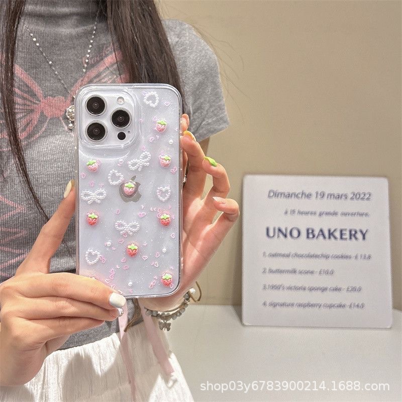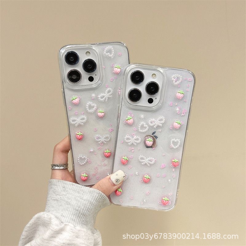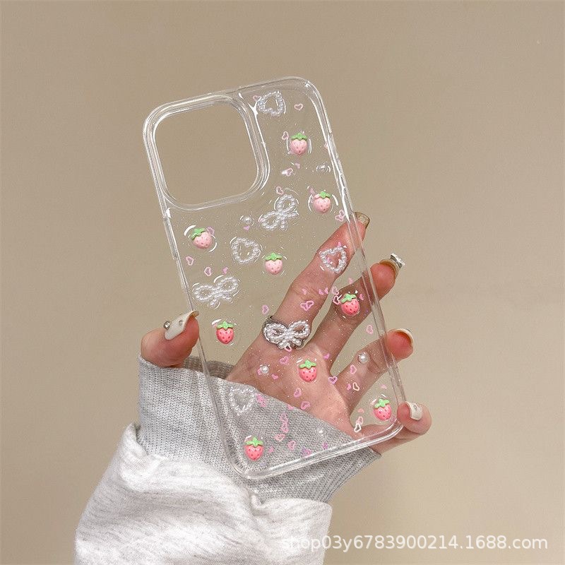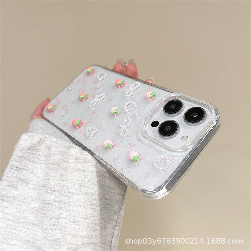 韓風水ドリル真珠愛蝶ネクタイリンゴ16iphone携帯ケース適用15透明14シンプル立体