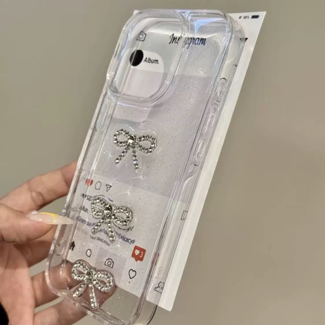 韓国風ラインストーンラブリボン Apple 16iphonemaz 携帯電話ケース 15 透明 14 シンプルな立体に適しています