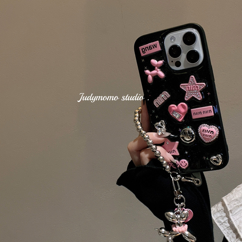ホットな女の子の立体星型バルーン犬のスマホケース、Apple 15 Pro Max、iPhone 16対応、耐衝撃