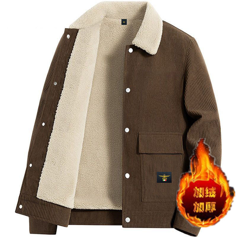 2025新款秋冬季加绒加厚男士外套宽松休闲工装灯芯绒夹克男中青年