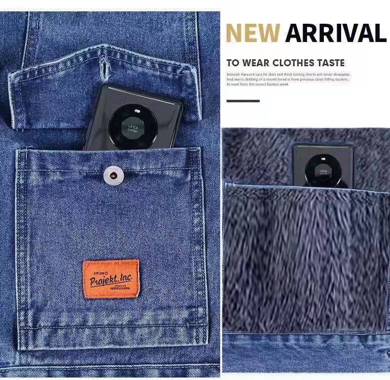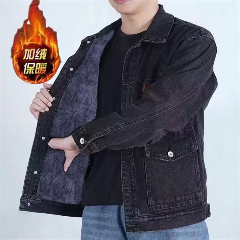 秋冬加绒加厚牛仔外套男潮牌工装夹克劳保防烫耐磨耐穿工作上衣男