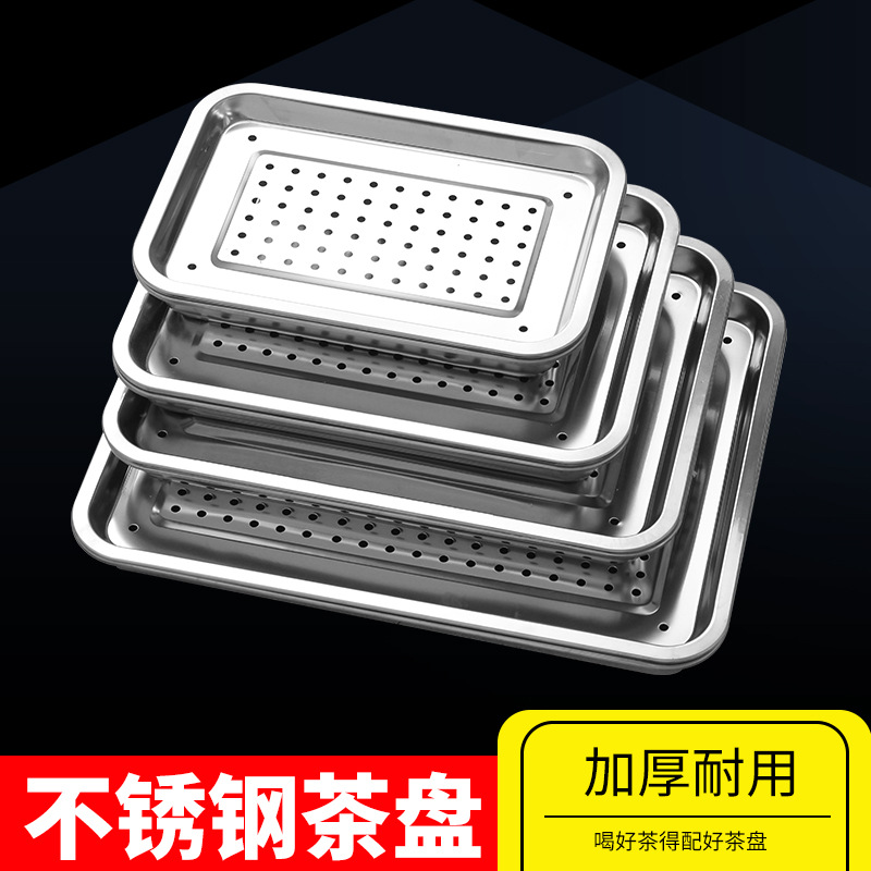 ステンレス茶皿家庭用長方形茶器客間小型茶トレー二重貯水式水切り皿漏れ皿
