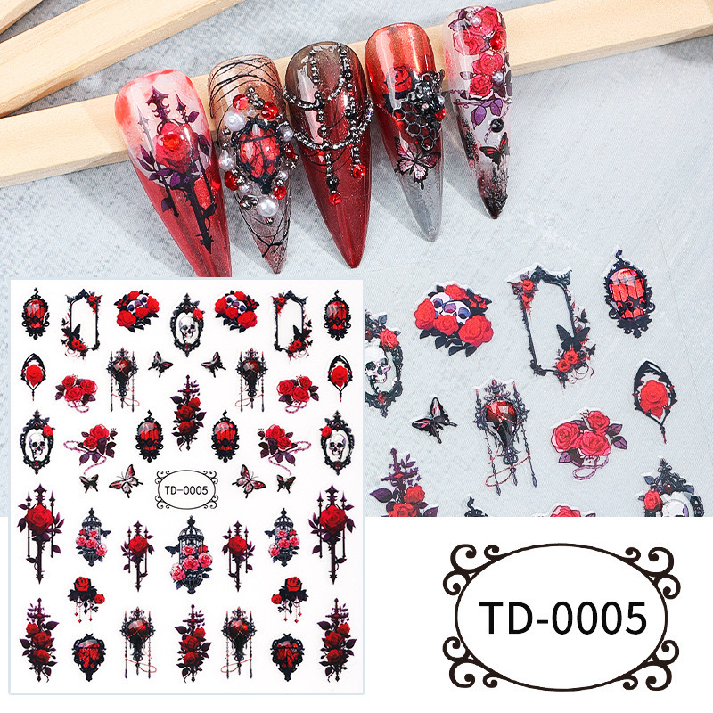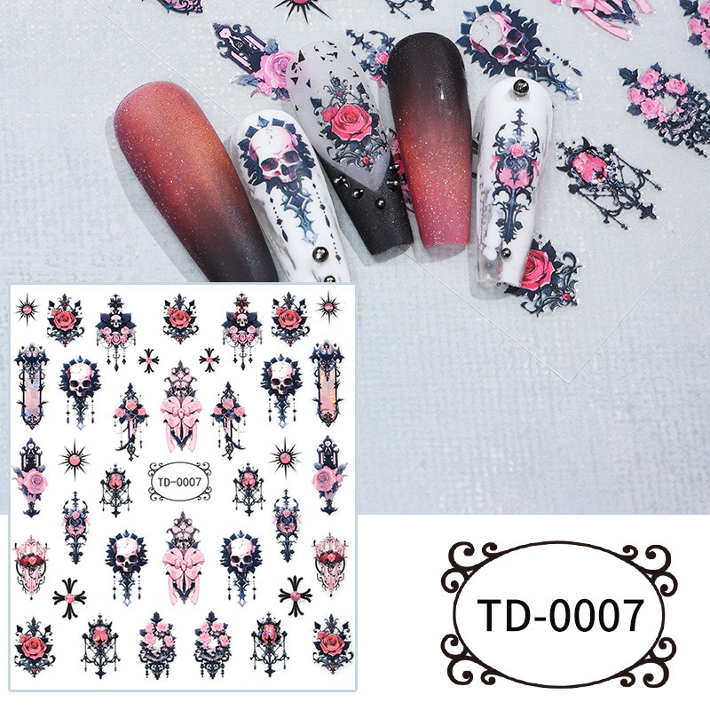 クロスボーダーダーク系ローズゴシック风ソフトジェルステッカー5Dネイルステッカー浮き雕りDIYハロウィン爪ステッカーインスタ