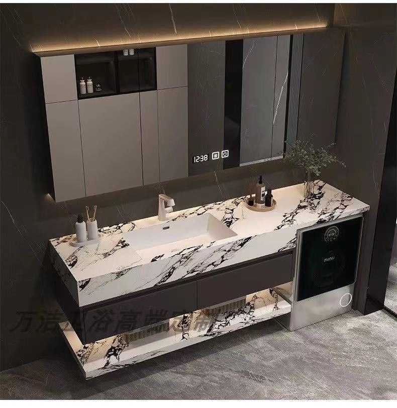 9saモダンシンプル洗濯機一体型キャビネット岩板浴室キャビネットセットシームレス洗面器手洗い洗面台洗面台