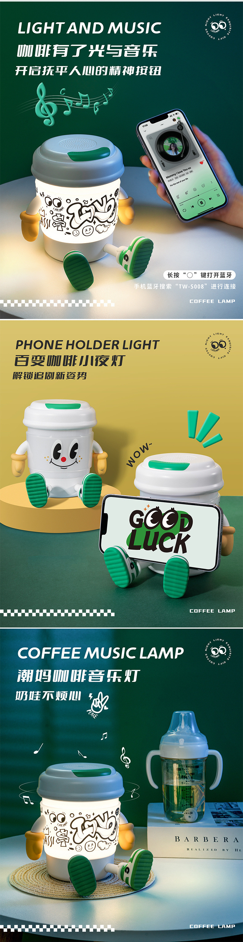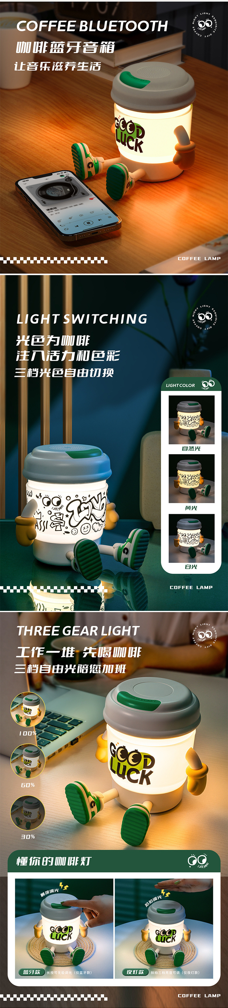 コーヒーカップのブルートゥースのスピーカーの小さい夜の明かりの寝室の睡眠の夜はベッドのヘッドライトをたたいて充電することができます。