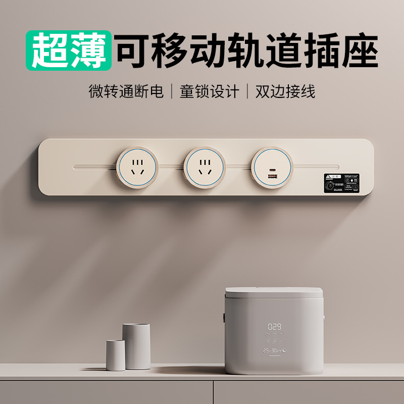 超薄轨道插座滑轨滑动插座家用可移动厨房专用明装餐边柜接线板