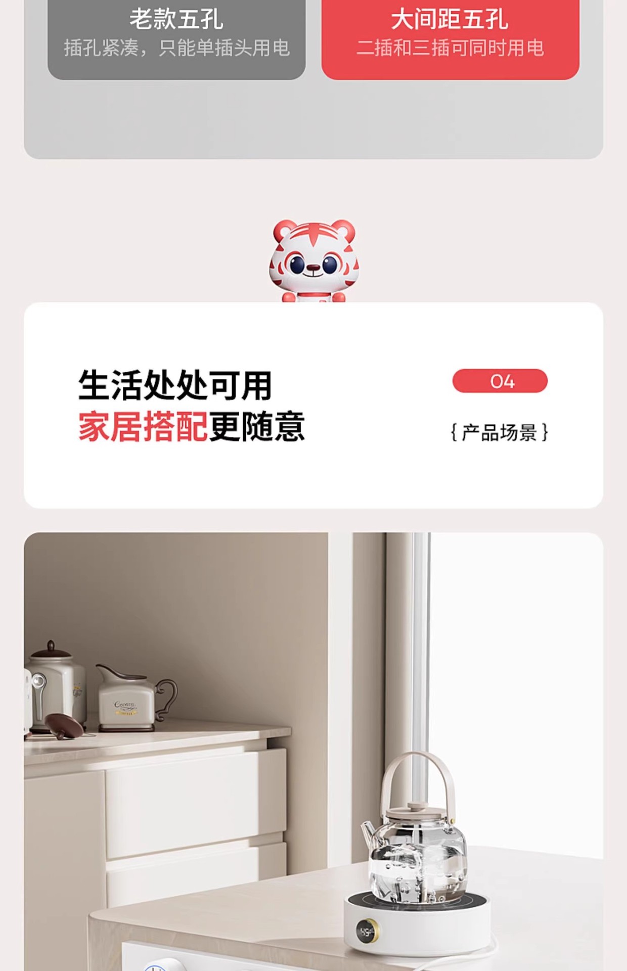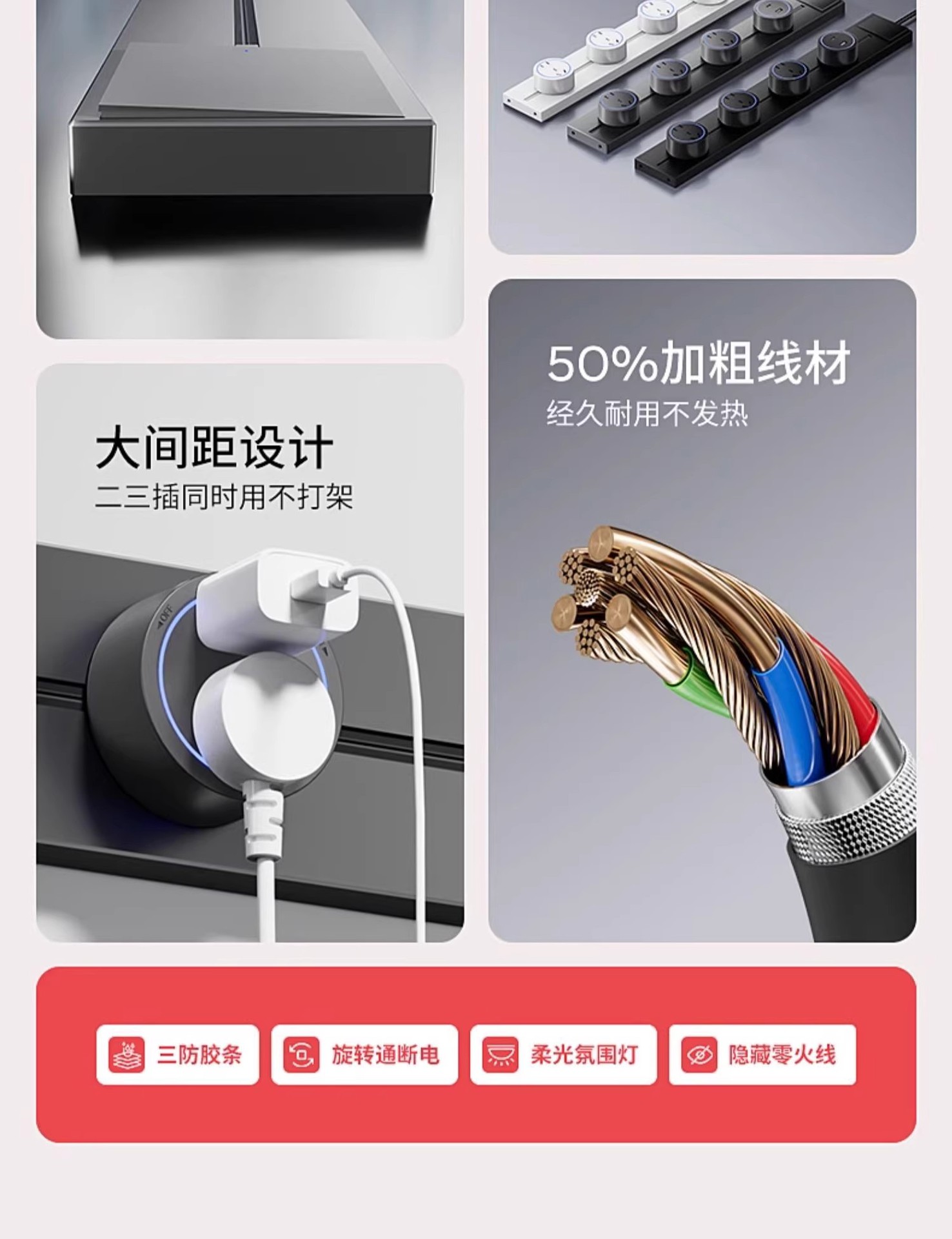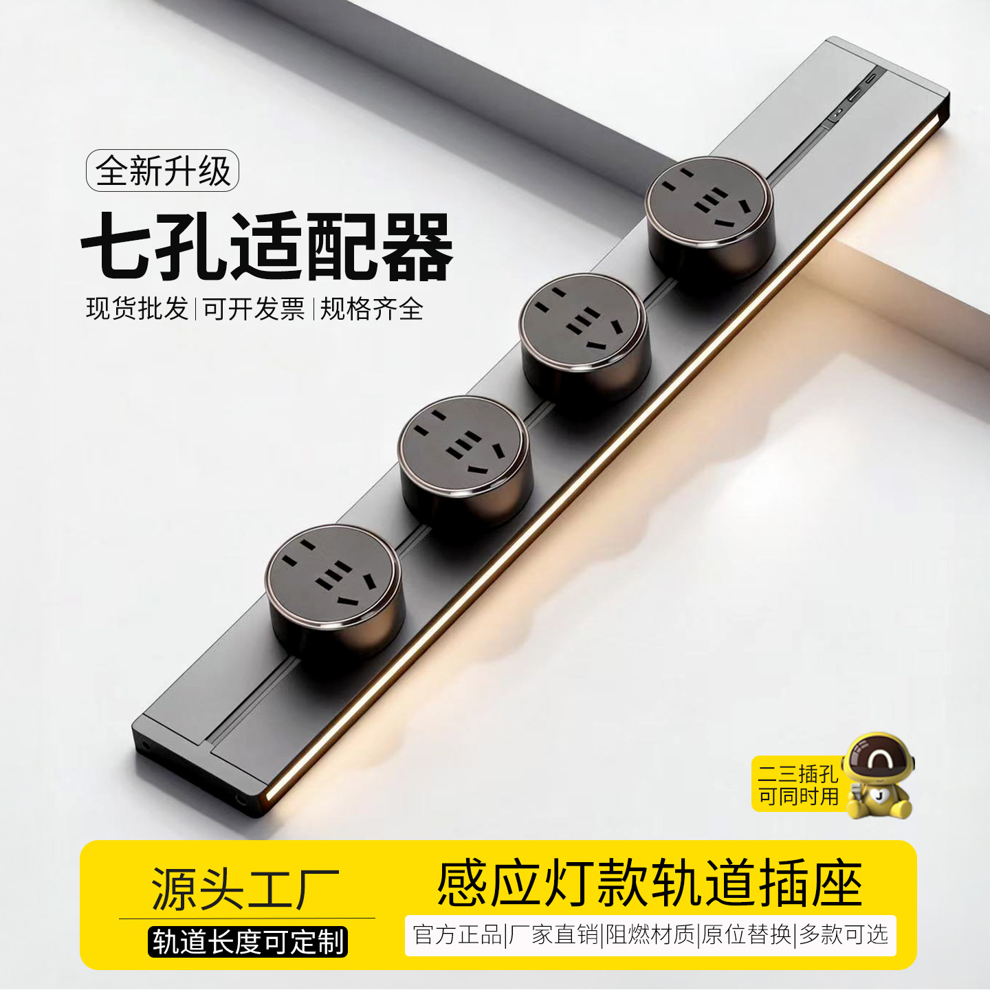 新升级可移动轨道插座接多插位排插家用多功能带感应灯插座转换器