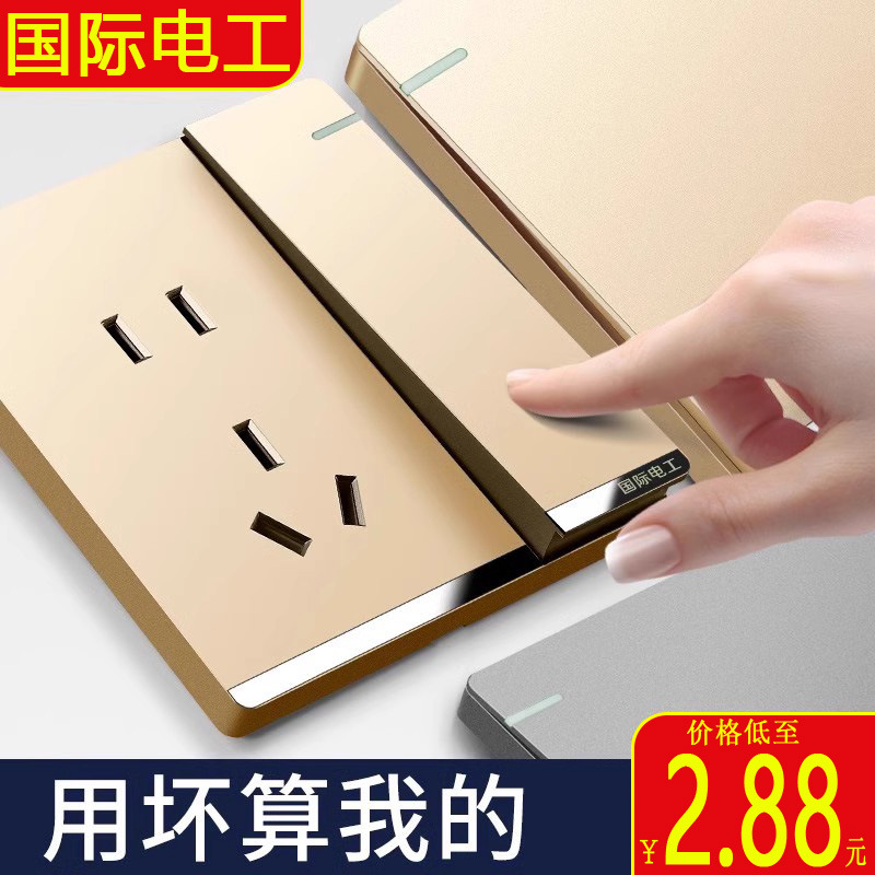 国際電気技師86型家庭用壁スイッチソケットパネル金色多孔usb暗装1開5穴付き5穴