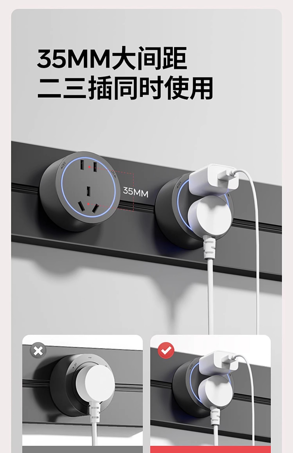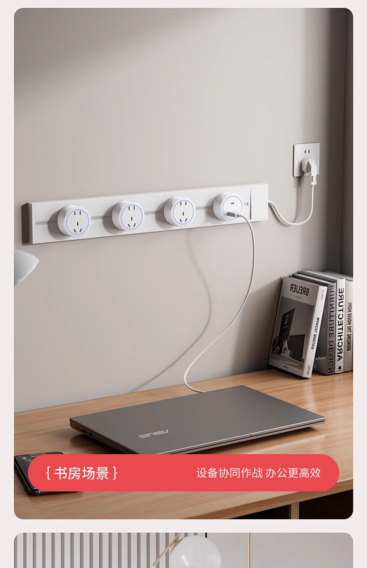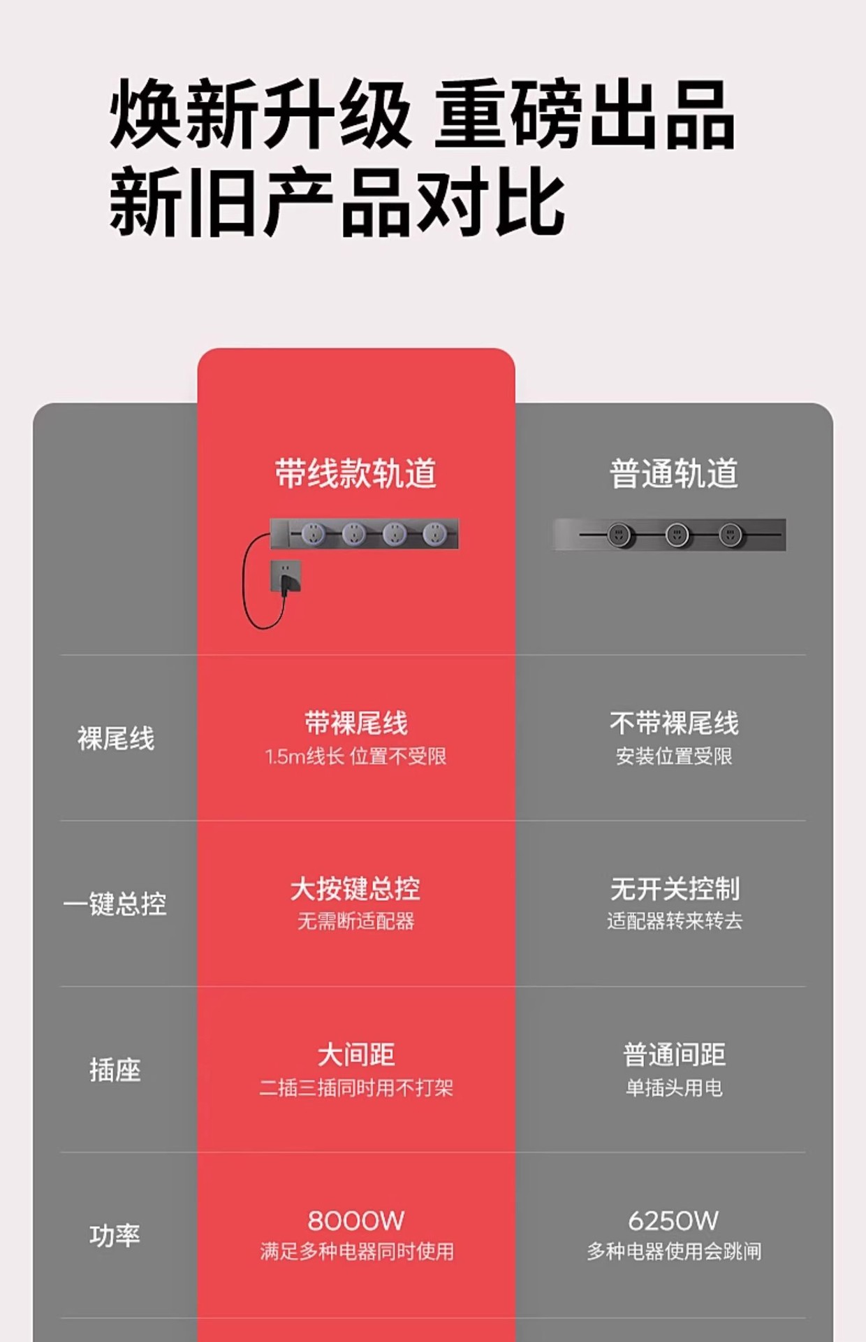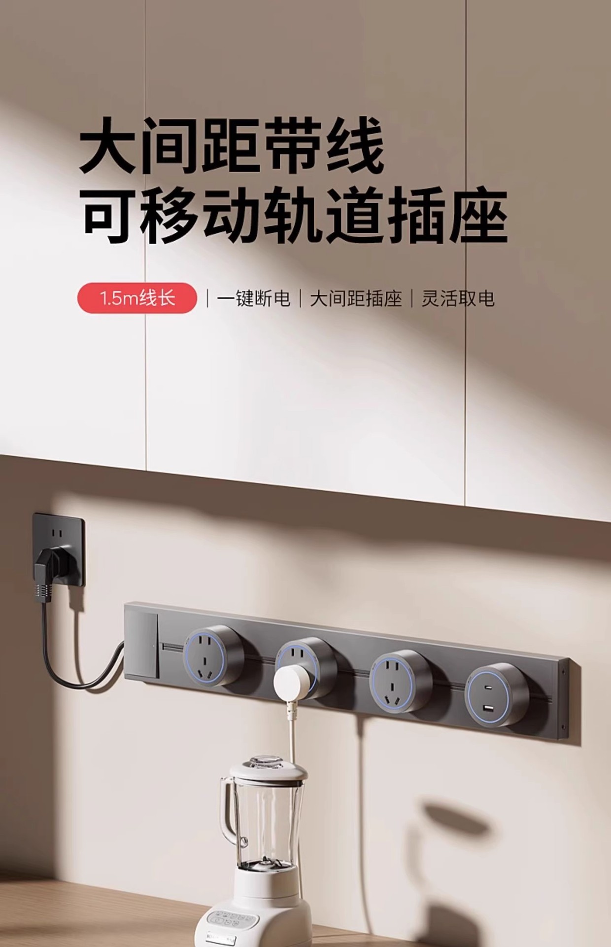智能轨道插座已接入米家APP家用厨房餐边柜移动带灯数显滑动插排