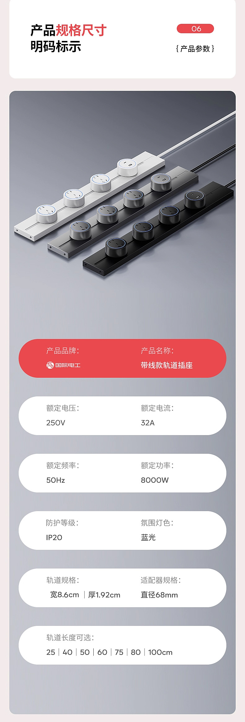 家用跨境美式明装带感应灯轨道插座厨房泰式欧标可移动大功率插排