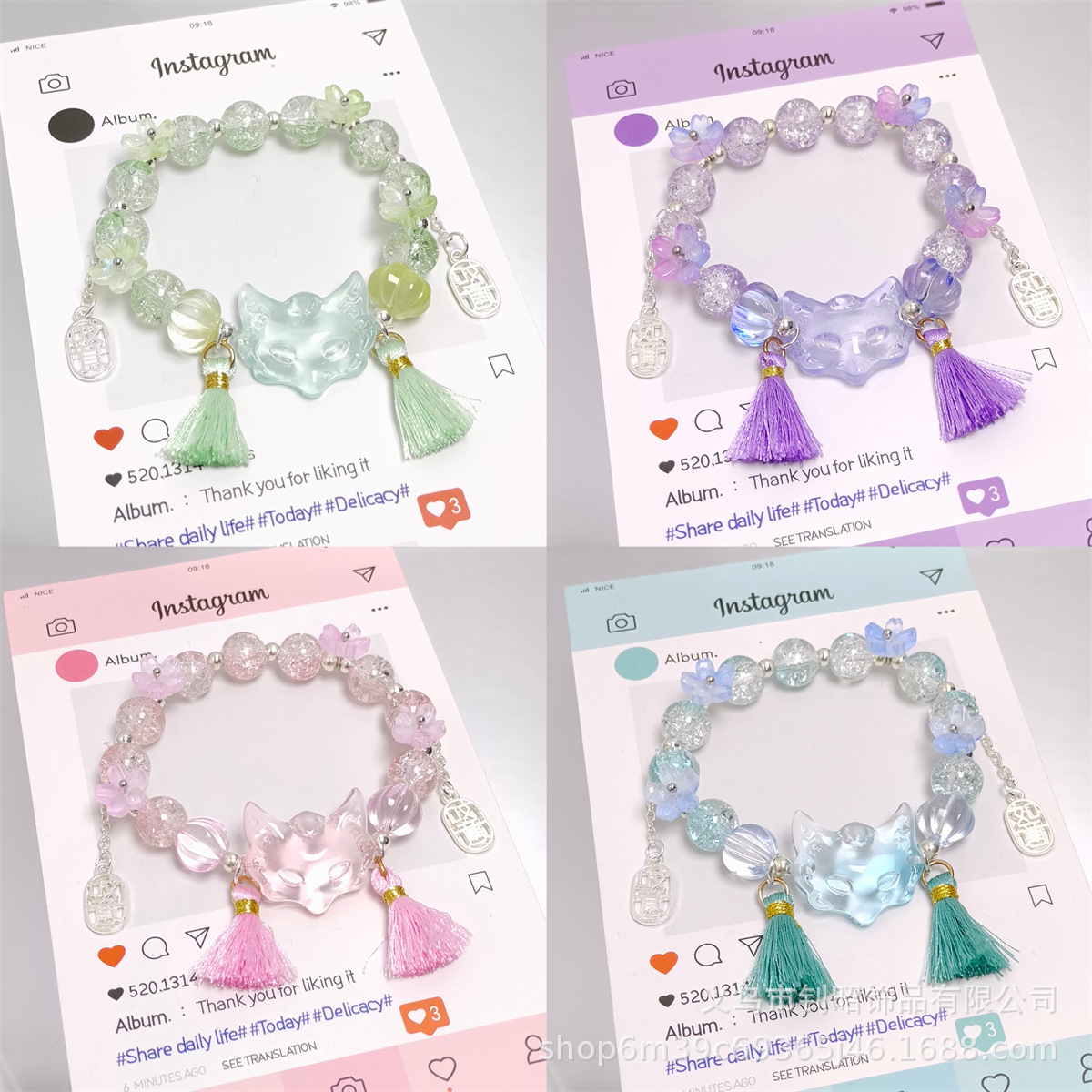 原创设计森系彩色流苏水晶桃花灵狐面具手链时尚高级手串厂家直销
