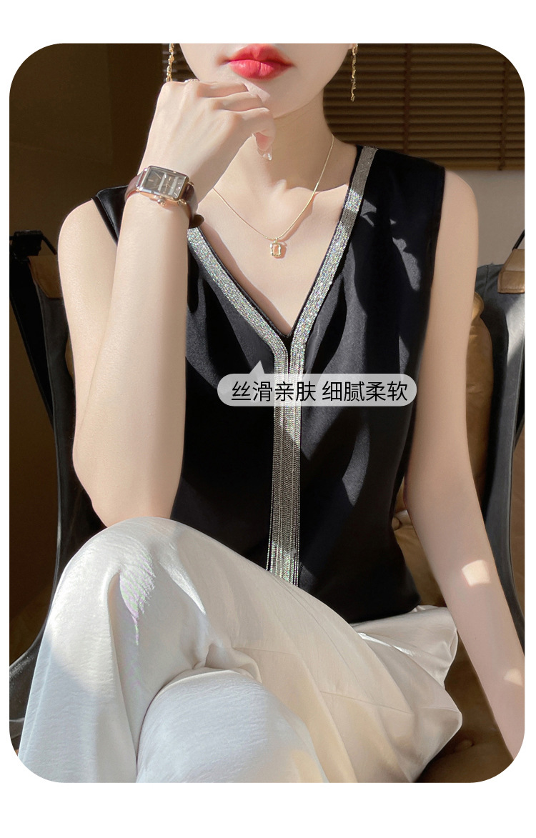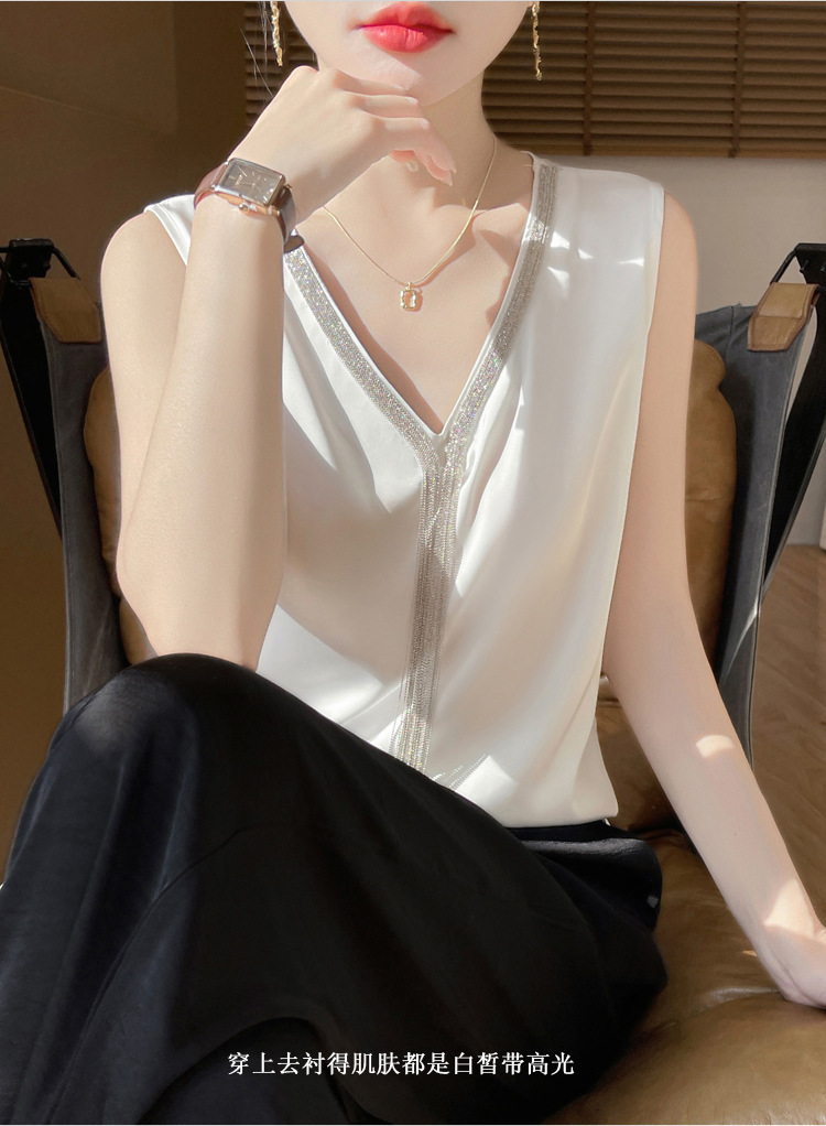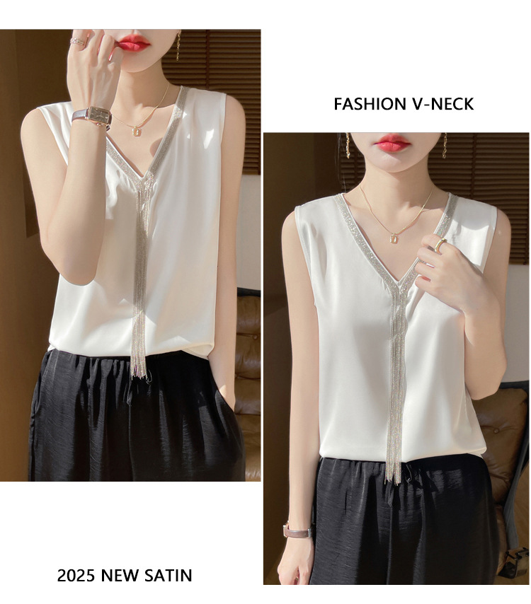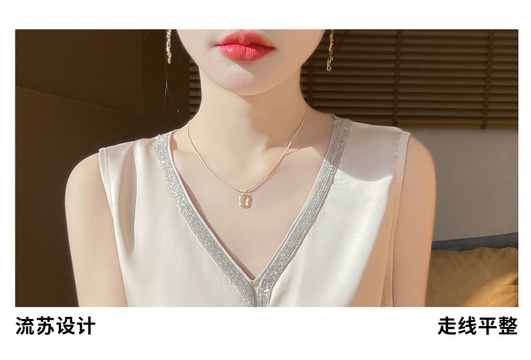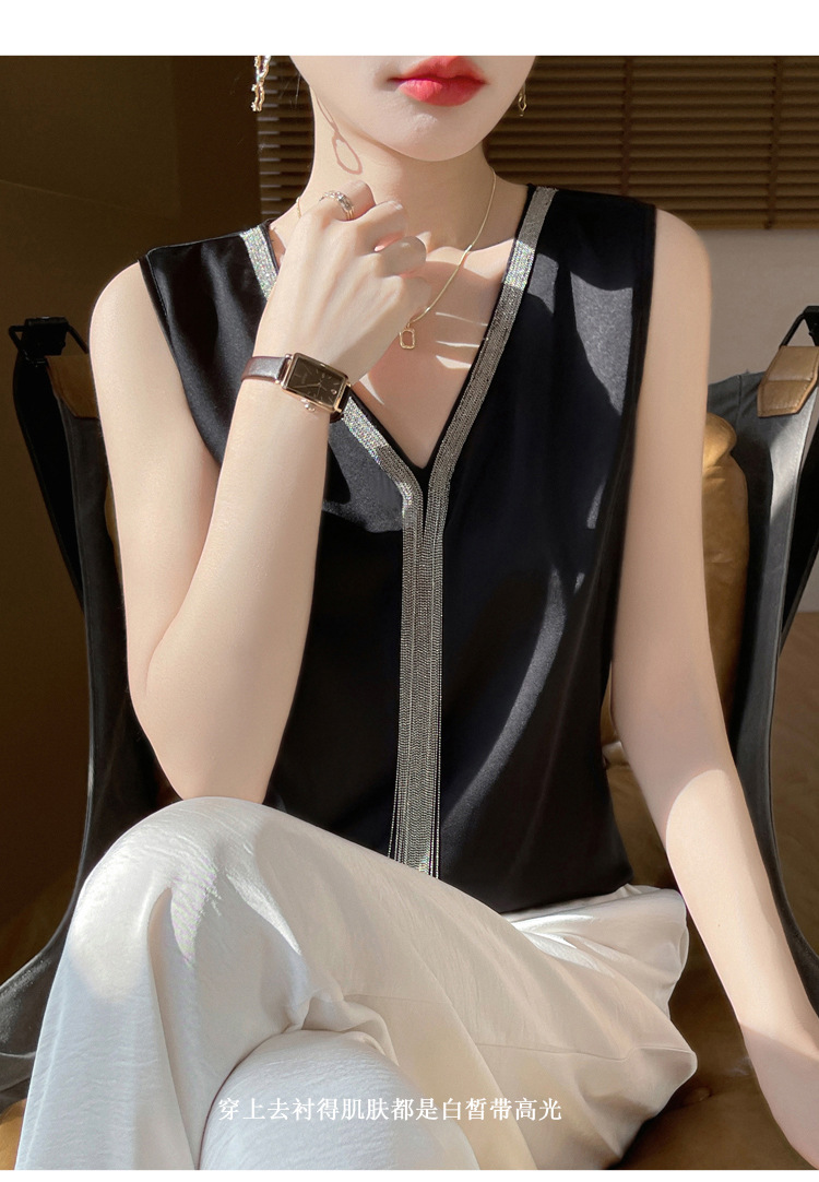 夏のゆるいシルク酢酸生地のストラップの女性の中にスーツのベストを着ている女性の外に袖のない上着を着ている