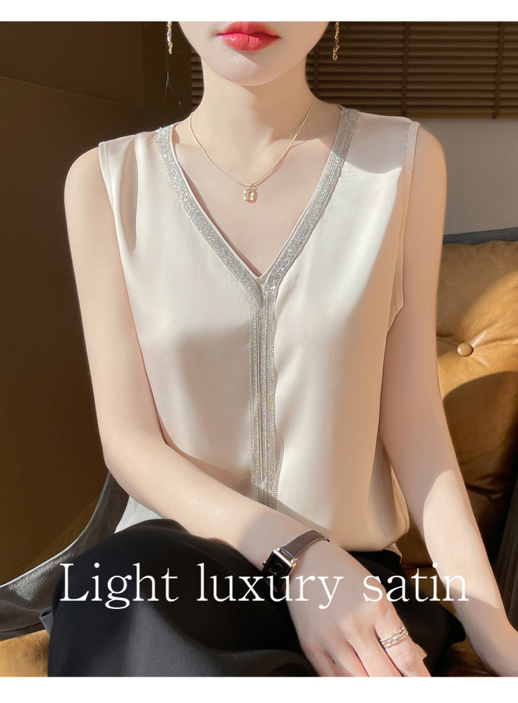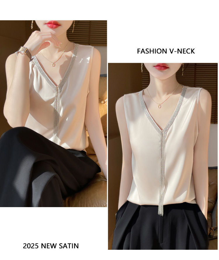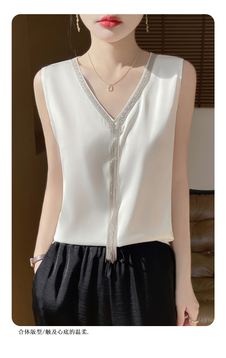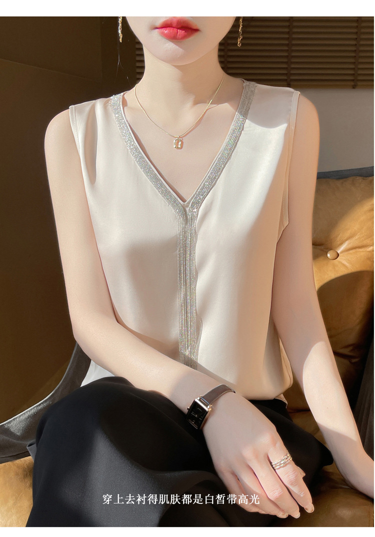 夏のゆるいシルク酢酸生地のストラップの女性の中にスーツのベストを着ている女性の外に袖のない上着を着ている