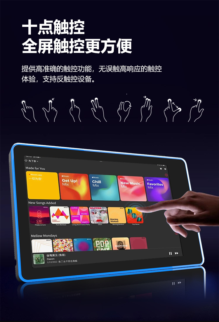 10.1インチアンドロイド広告一体型四面ランプ付き超薄型POEコンデンサタッチNFC壁掛けタブレット