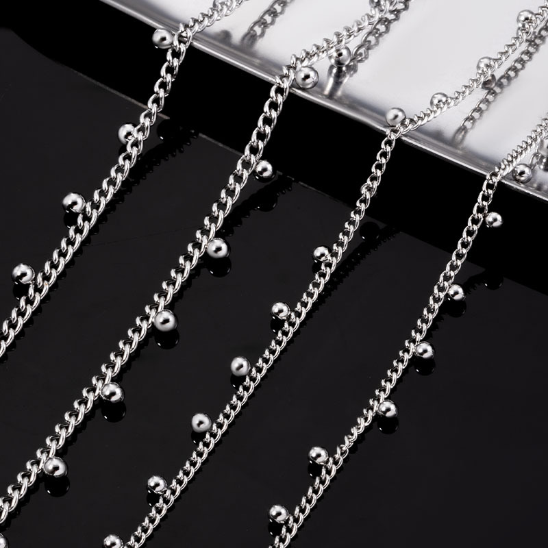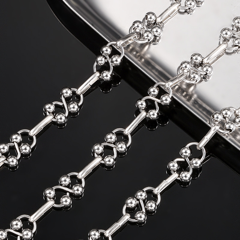 ステンレスダブルビーズチェーンdiy部品材料四珠ネックレスチェーン8字チェーン個性ファッションアクセサリーチェーン