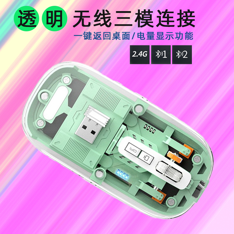 クロスボーダー起爆透明マウス2.4g無線二重モード静音適用タブレットノートパソコン事務ゲームマウス