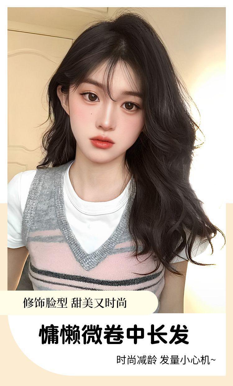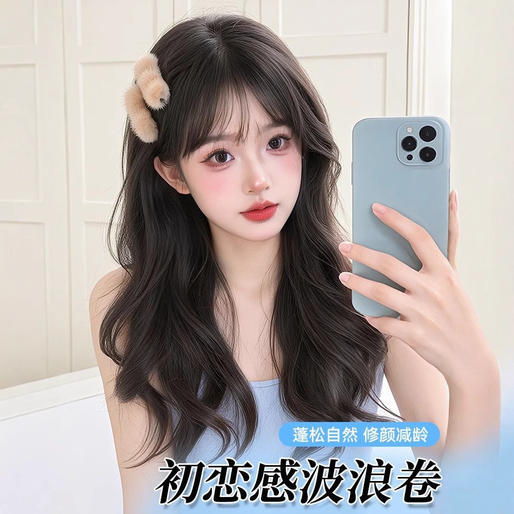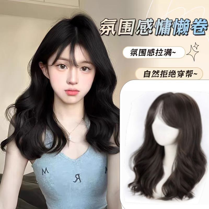 假发女中长款羊毛卷短发水波纹空气刘海中长发自然蓬松全头套现货