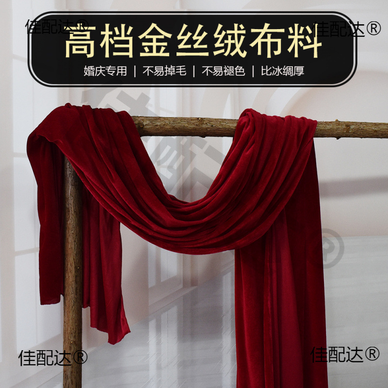 結婚式の結婚祝いの現場に黒いワインと金のベルベットの生地を配置して、背景のカーテンを厚くして農村の屋外装飾をします。