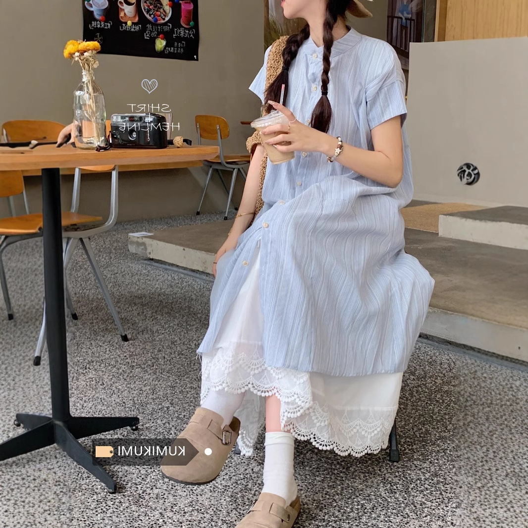 ゆったりとしたカジュアルなシャツのワンピース女性2025夏の新型の白いa字のスカートは2つのセットを重ねて着ます。