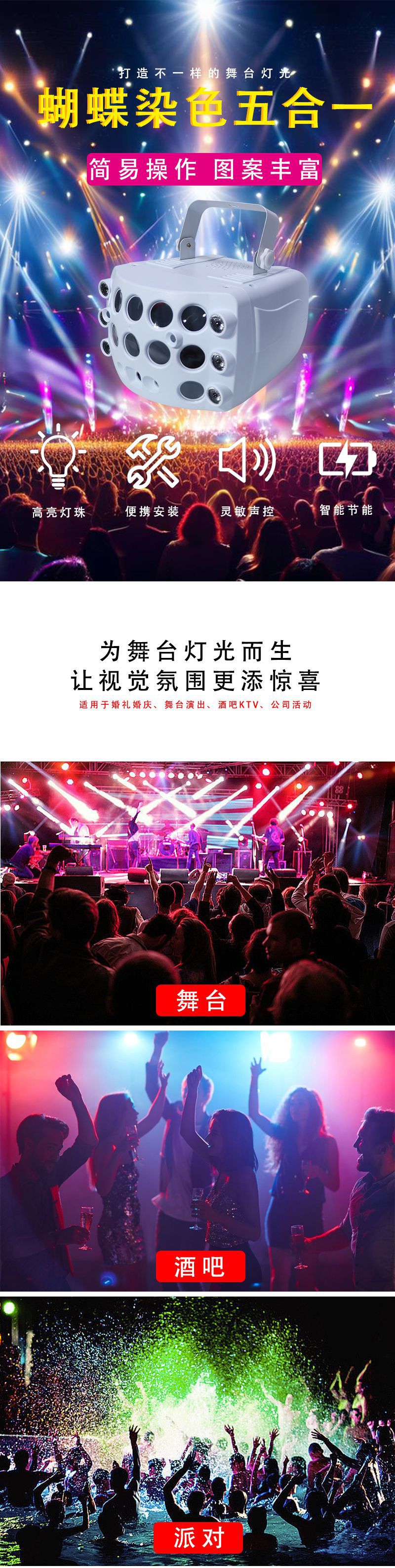 蝶染色五合一舞台効果KTVステージライト