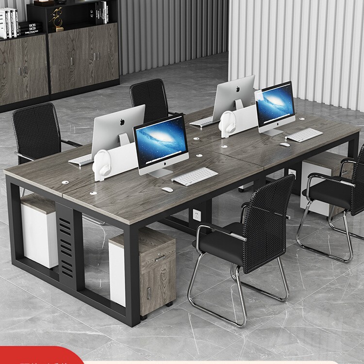 事務机と椅子の組み合わせの事務室のコンピュータの机の4、6人の従業員の位置は簡単です。