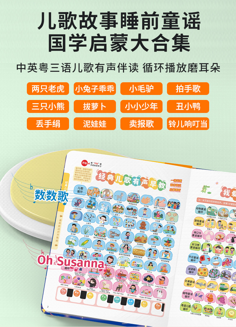 中国語、英語、広東語の三か国語 [55ページの大型本+幼児教育向け童謡と物語]