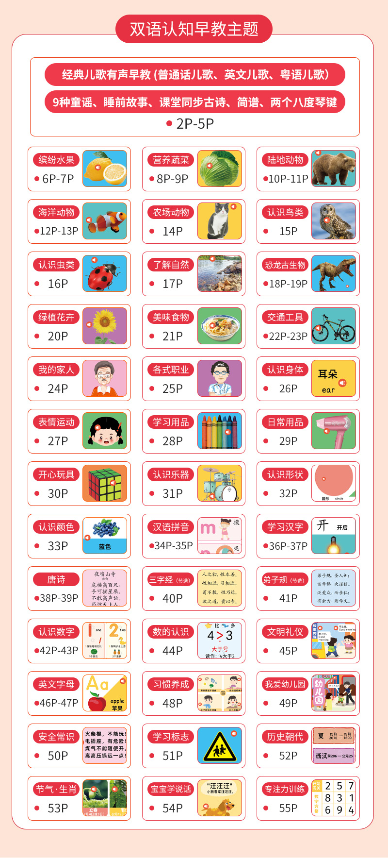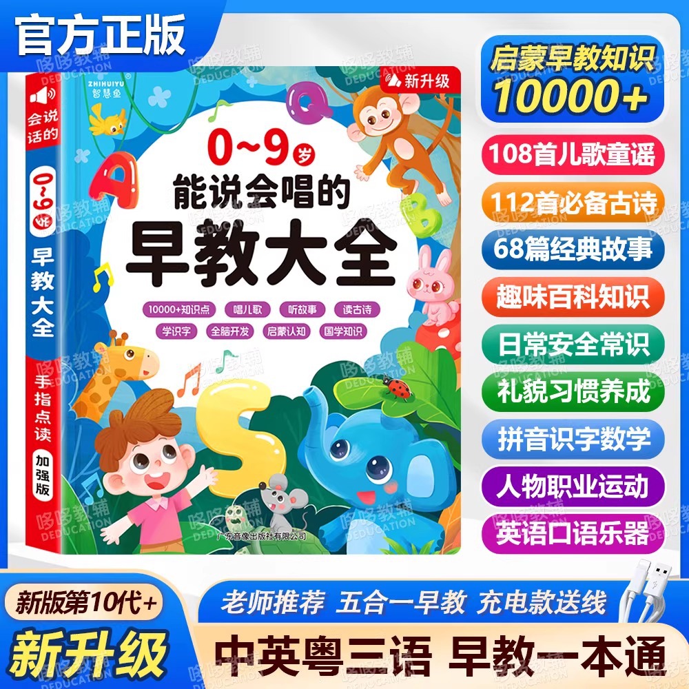 会说话的0-9岁能说会唱的早教有声书手指点读发声书幼小衔接点读3