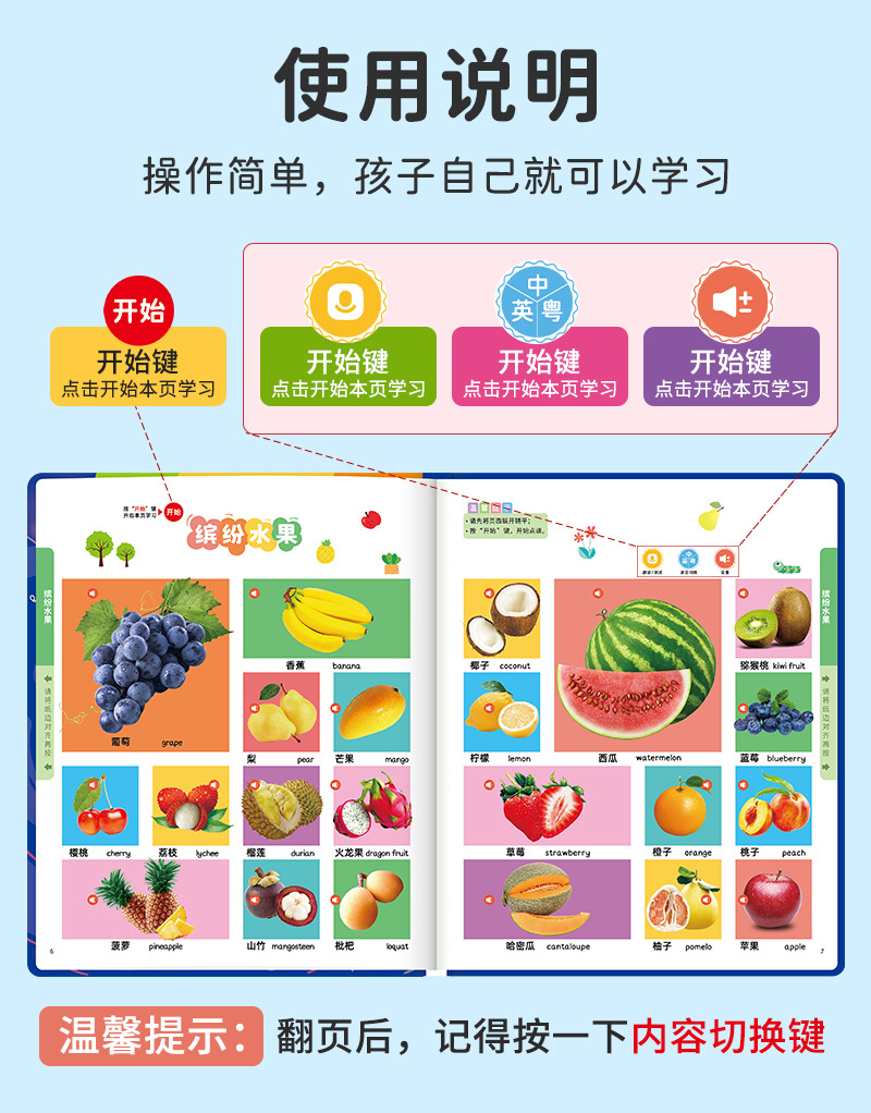 楽楽魚の新商品が話せる三語早教有声書啓蒙益智0-8歳の子供が発声書を注文して読みます。