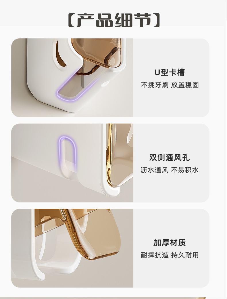 货号:GQ240801 | 品名:简约·防尘牙刷架 | 颜色:茶色/灰色